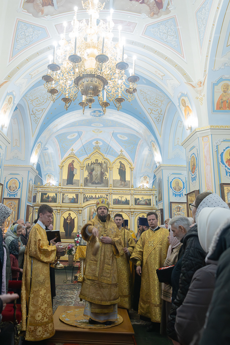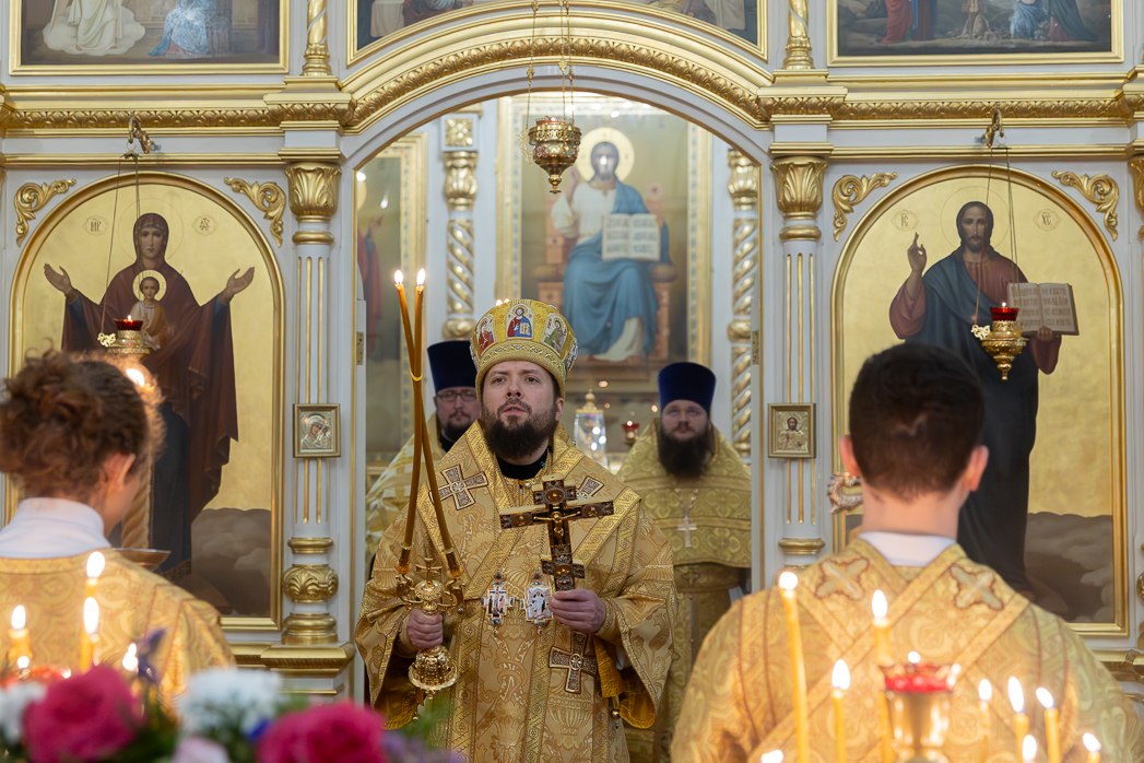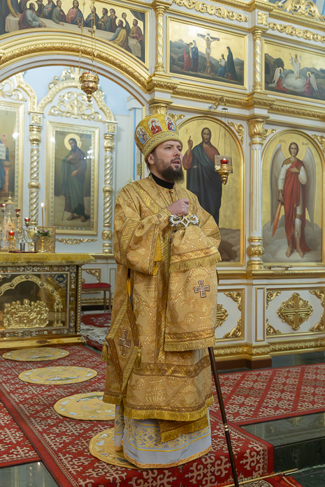 По прочтении евангельского отрывка Правящий Архиерей обратился к молящимся с архипастырским словом. Владыка Дионисий разъяснил присутствующим историю евангельских событий и побеседовал с молящимися о духовном возрастании.