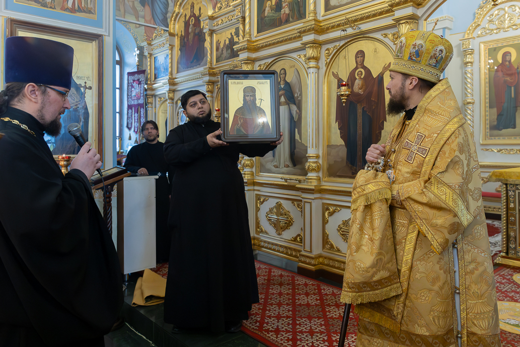 В завершении чина освящения к Архипастырю обратился благочинный Острогожского церковного округа, настоятель храма иерей Алексий Курганский. Священнослужитель поблагодарил Владыку Дионисия за архипастырский визит и в знак сыновней любви на молитвенную память преподнес икону Его небесного покровителя преподобного Дионисия Радонежского.