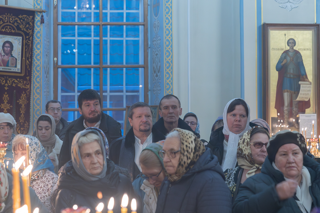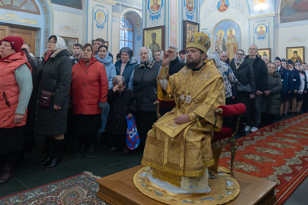 На сугубой ектении были произнесены особые прошения: «…о еже прияти молитвы нас, недостойных рабов Твоих, в сию годину испытания, пришедшую на Русь Святую…». Затем епископ Дионисий вознес молитву о Святой Руси. По благословению Святейшего Патриарха Московского и всея Руси Кирилла эта молитва возносится во всех храмах Русской Православной Церкви.
