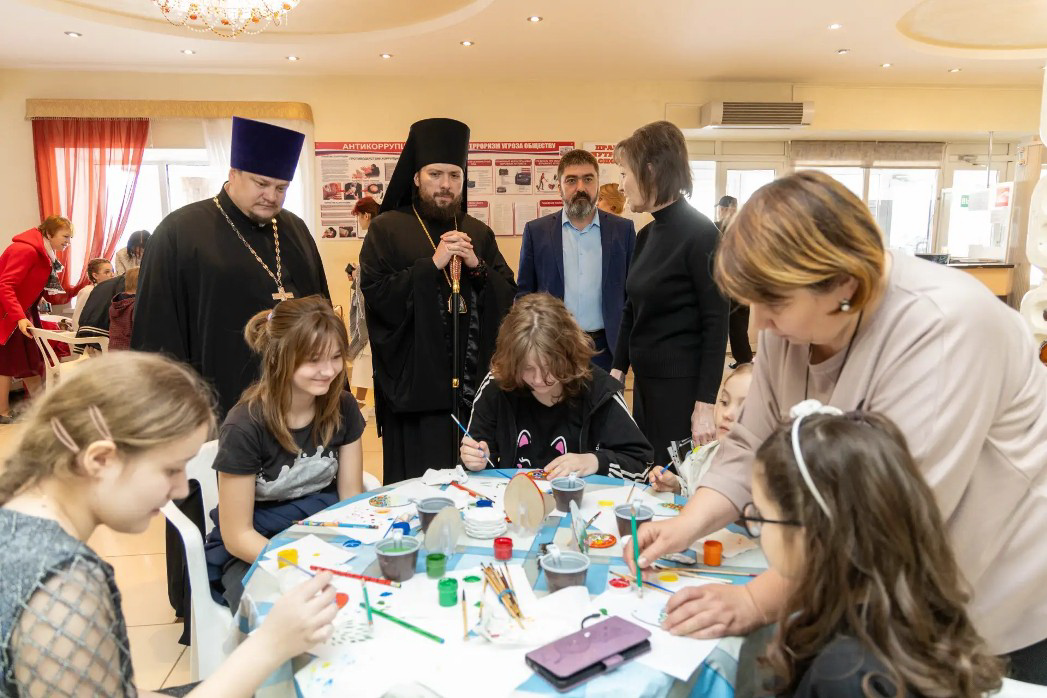 Перед началом концертной программы Архипастырь вместе с заместителем главы администрации – руководителем отдела по образованию администрации Калачеевского муниципального района Александром Вячеславовичем Пономаревым ознакомился с работой мастер-классов «Пасхальный сувенир», представленных мастерами декоративно-прикладного творчества.