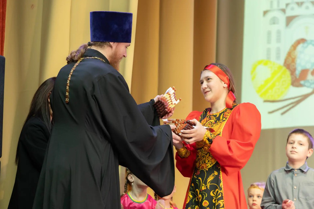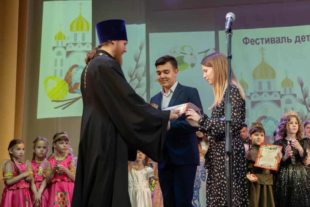В завершении к присутствующим обратился помощник благочинного Калачеевского церковного округа по молодежной работе, настоятель храма святого Великомученика и Победоносца Георгия села Манино иерей Рустик Богданов. Затем все участники фестиваля были отмечены благодарственными письмами и получили сладкие подарки из рук священника. Завершился праздник традиционным пасхальным приветствием «Христос Воскресе!» – «Воистину Воскресе!», которое прозвучало в зале под аплодисменты зрителей.