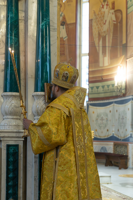 По прочтении евангельского отрывка епископ Дионисий обратился к молящимся с архипастырским словом. В своей проповеди Владыка разъяснил присутствующим притчу Господа Иисуса Христа о безумном богаче, прочитанную в Недельном евангельском зачале.