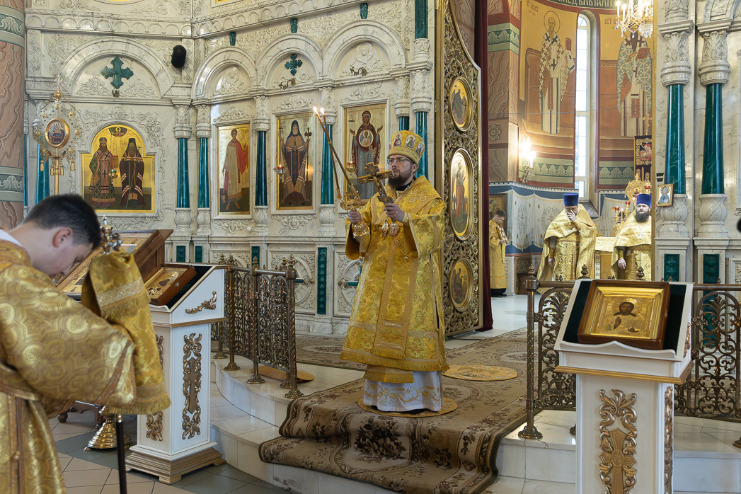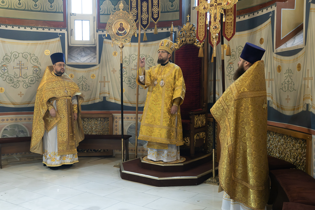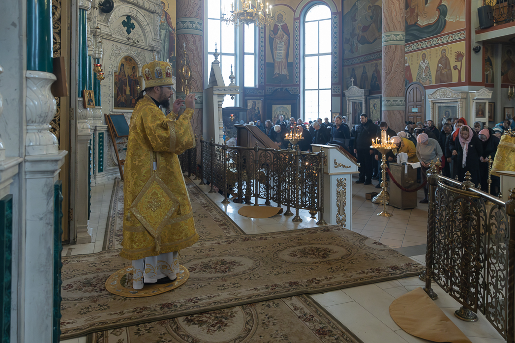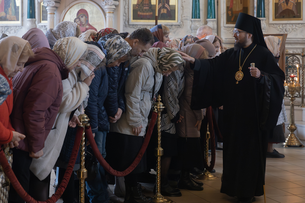 После отпуста Литургии Архипастырь обратился к духовенству и пастве с проповедью. В своем слове Правящий Архиерей поздравил всех молящихся с воскресным днем, а причастников с принятием Святых Животворящих Христовых Таин.