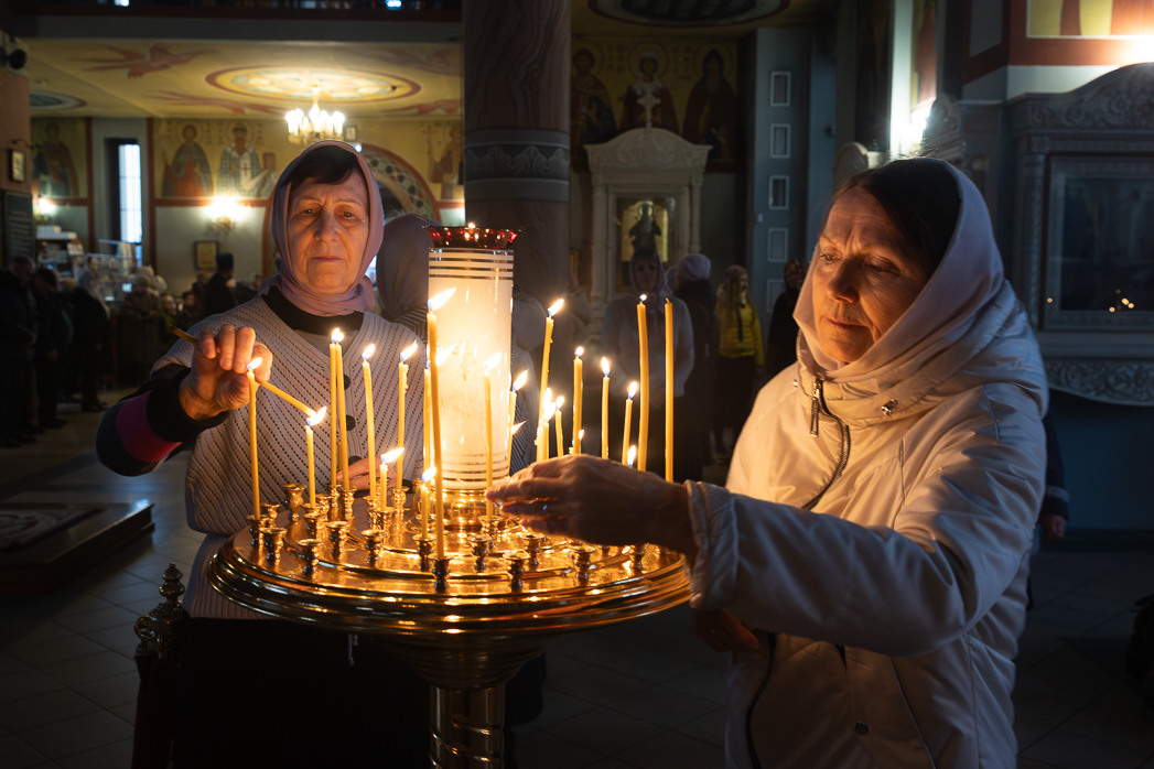 На сугубой ектении были произнесены прошения: «...о еже прияти молитвы нас недостойных рабов Твоих в сию годину испытания...» и прошение о «Преосвященных архипастырях, пастырях, монашествующих и мирянах земли Украинския, о единстве Церкви Христовы ревнующих, в заточении и гонениях сущих». Затем епископ Дионисий вознес молитву о Святой Руси. По благословению Святейшего Патриарха Московского и всея Руси Кирилла эта молитва читается во всех храмах Русской Православной Церкви.