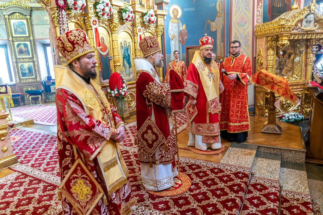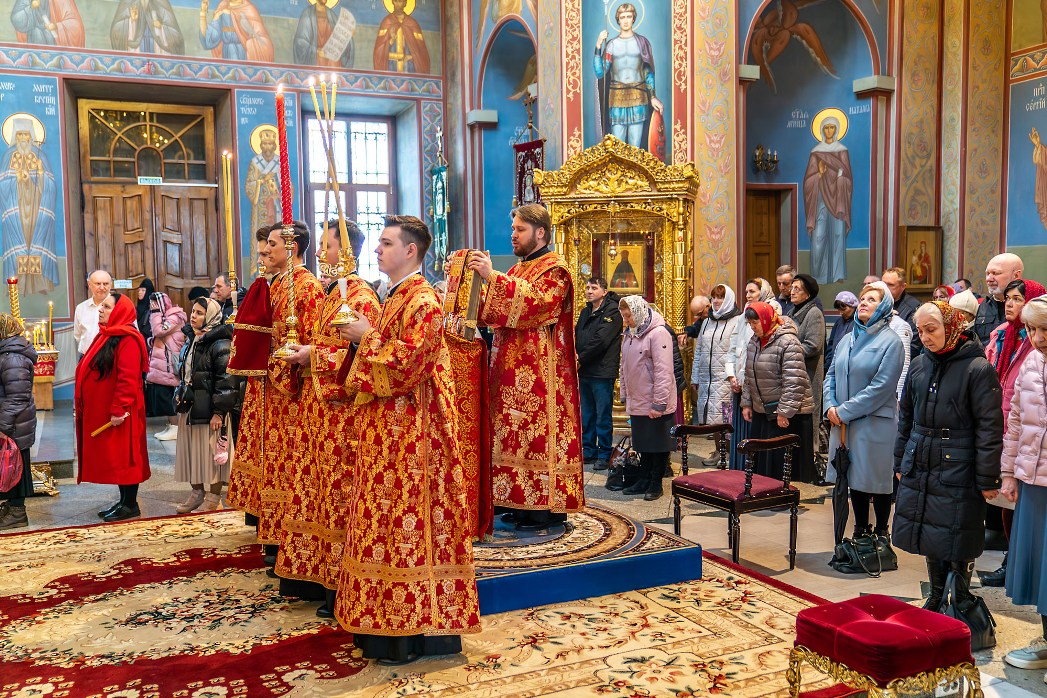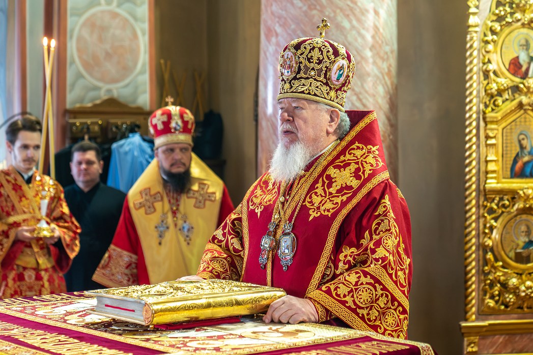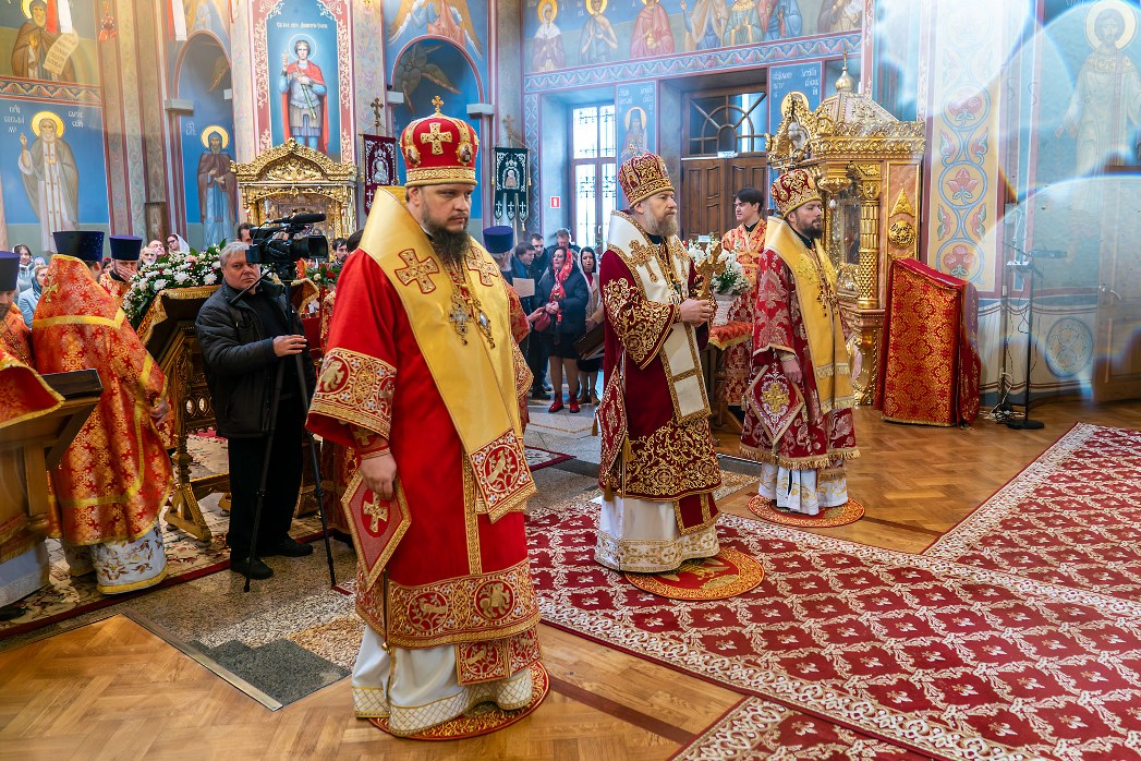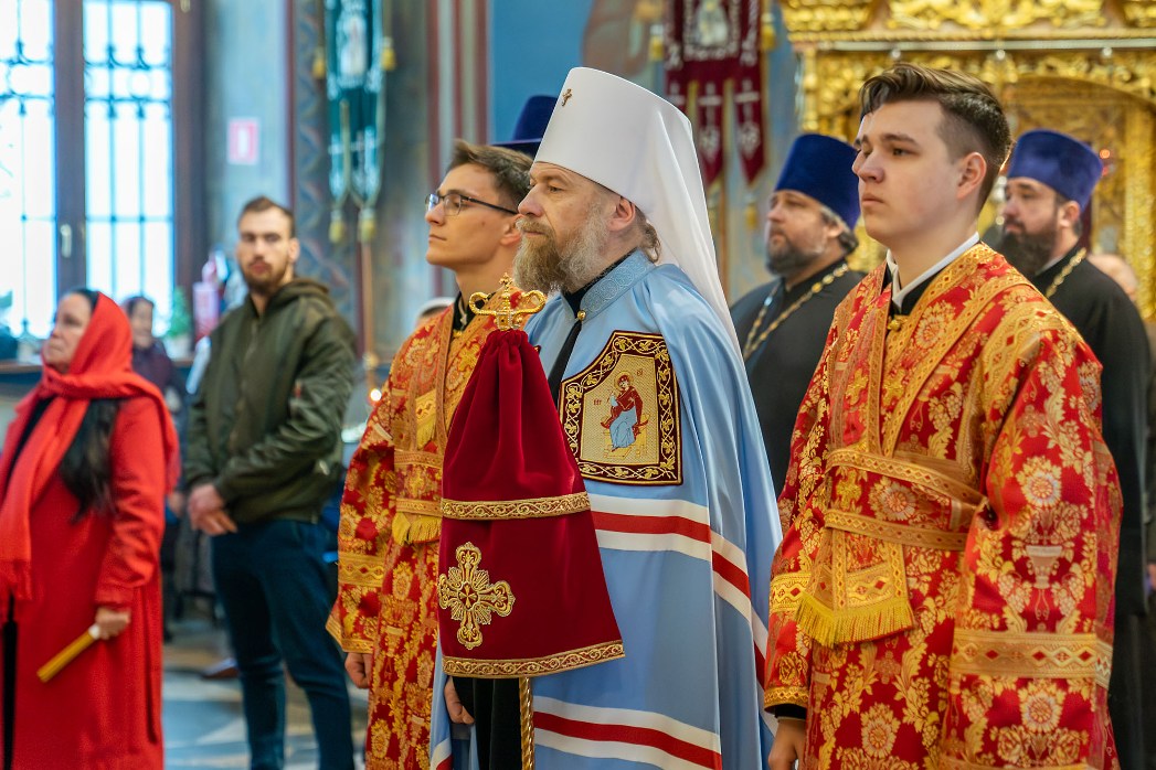 На сугубой ектении были произнесены прошения: «...о еже прияти молитвы нас недостойных рабов Твоих в сию годину испытания...» и прошение о «Преосвященных архипастырях, пастырях, монашествующих и мирянах земли Украинския, о единстве Церкви Христовы ревнующих, в заточении и гонениях сущих». Затем митрополит Леонтий вознес молитву о Святой Руси. По благословению Святейшего Патриарха Московского и всея Руси Кирилла эта молитва читается во всех храмах Русской Православной Церкви.