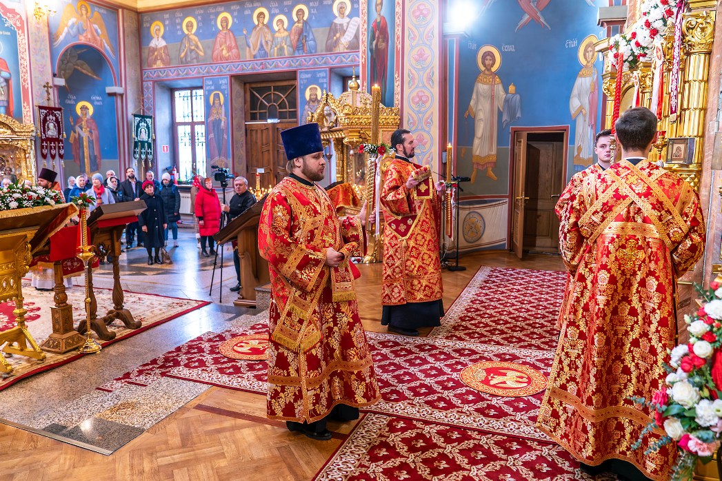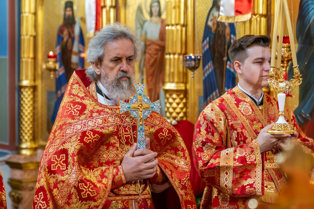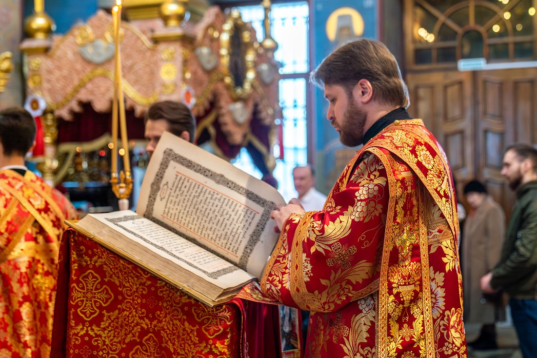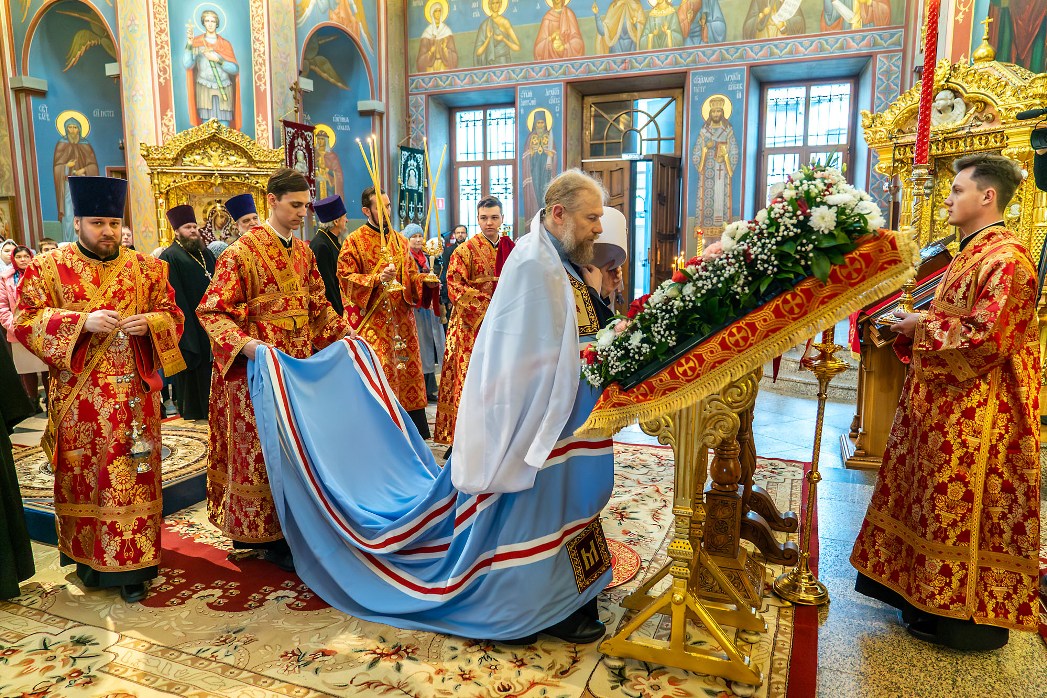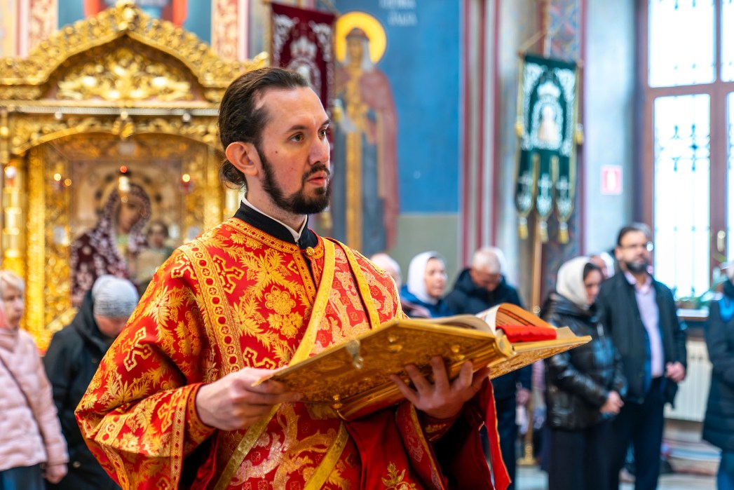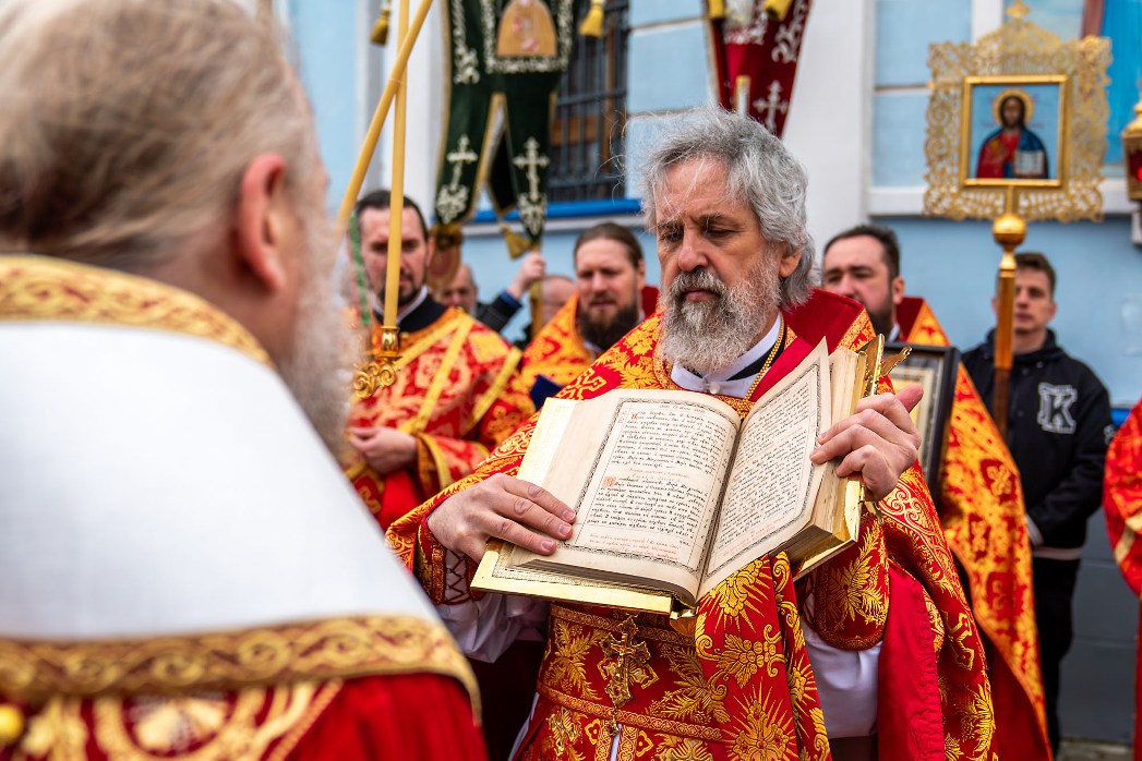 На сугубой ектении были произнесены прошения: «...о еже прияти молитвы нас недостойных рабов Твоих в сию годину испытания...» и прошение о «Преосвященных архипастырях, пастырях, монашествующих и мирянах земли Украинския, о единстве Церкви Христовы ревнующих, в заточении и гонениях сущих». Затем митрополит Леонтий вознес молитву о Святой Руси. По благословению Святейшего Патриарха Московского и всея Руси Кирилла эта молитва читается во всех храмах Русской Православной Церкви.