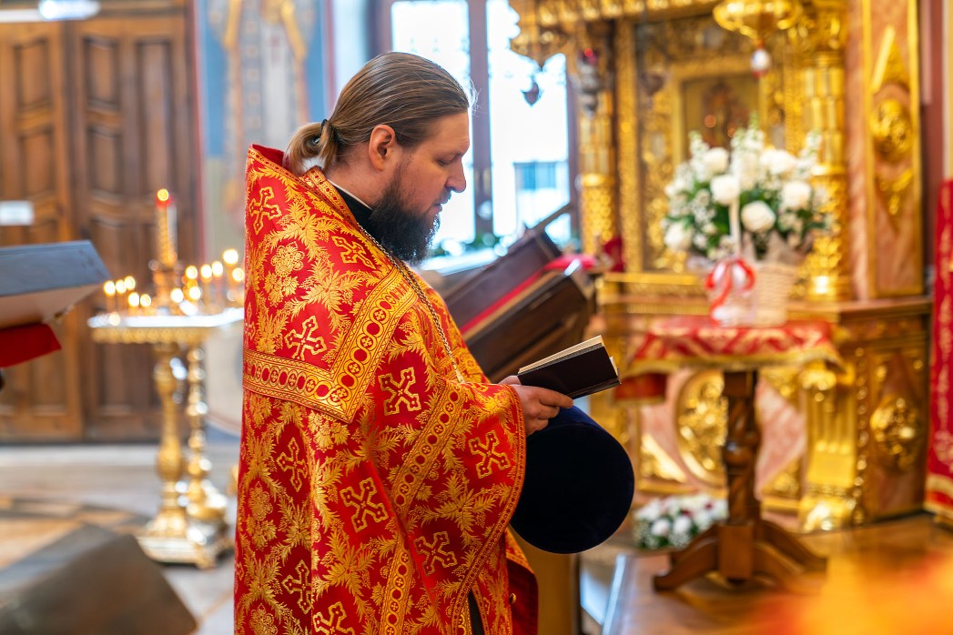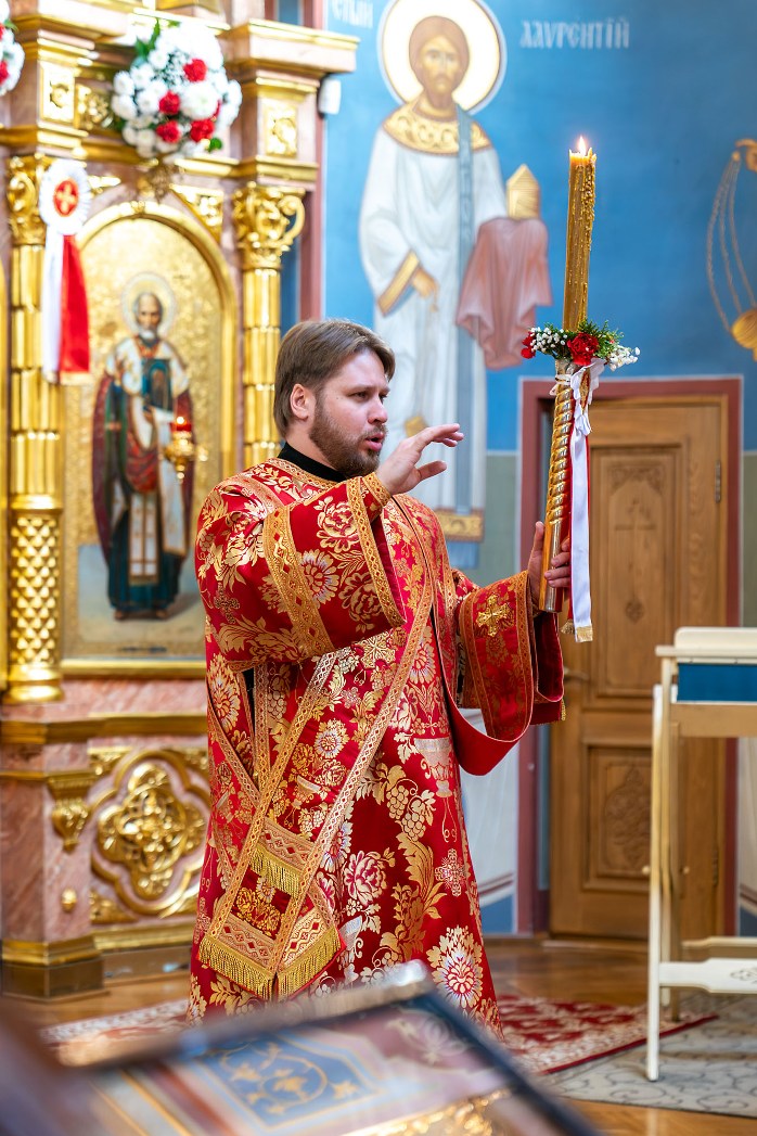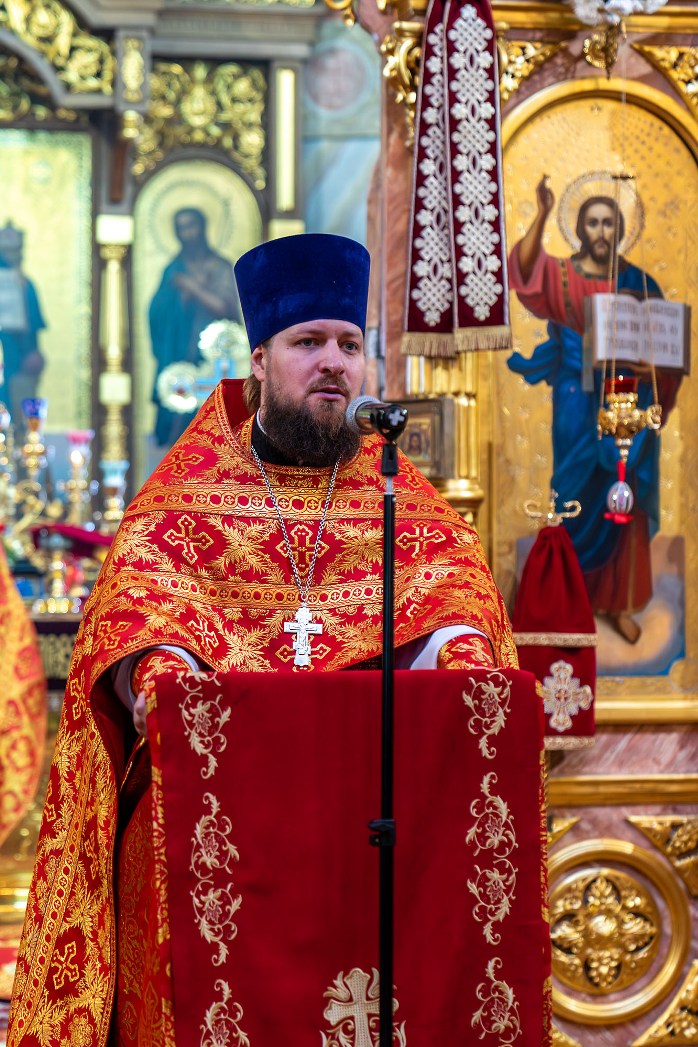 Проповедь о празднике Воскресения Христова по запричастном стихе произнес клирик Покровского собора иерей Роман Гармонов.