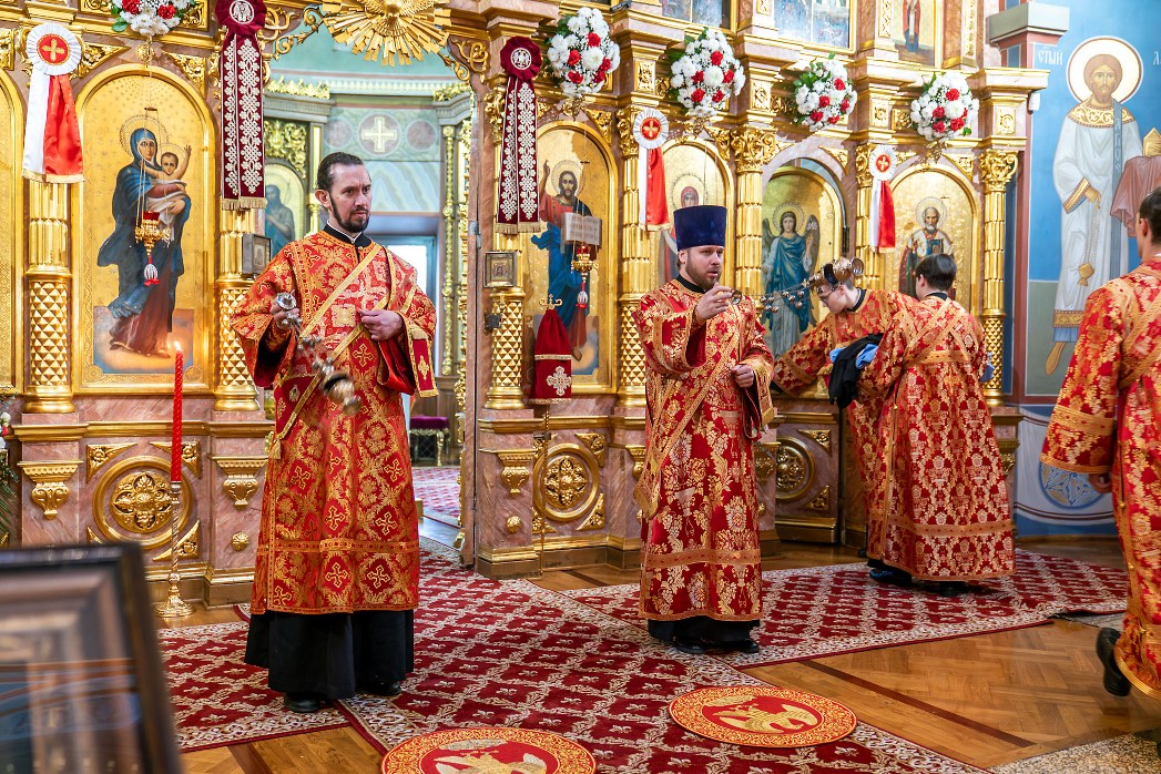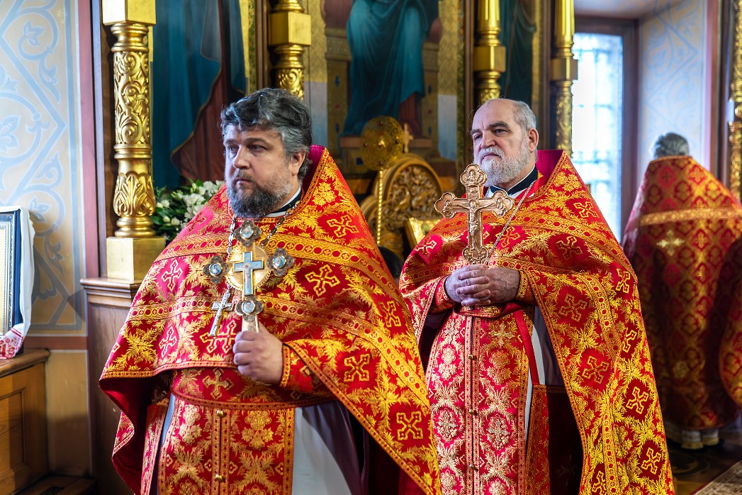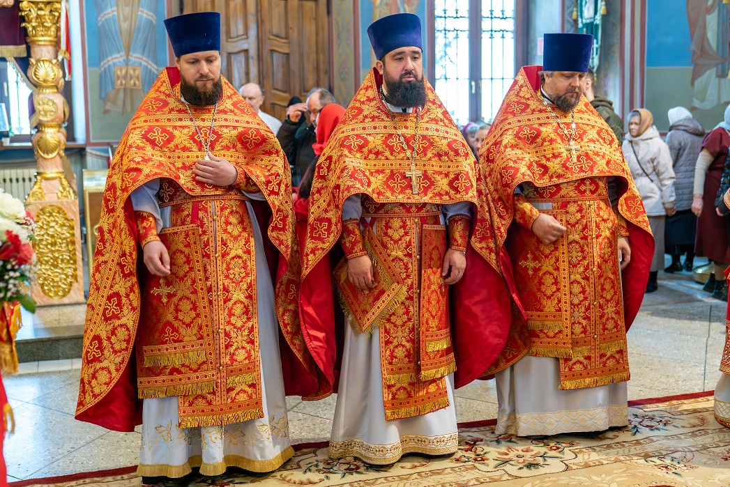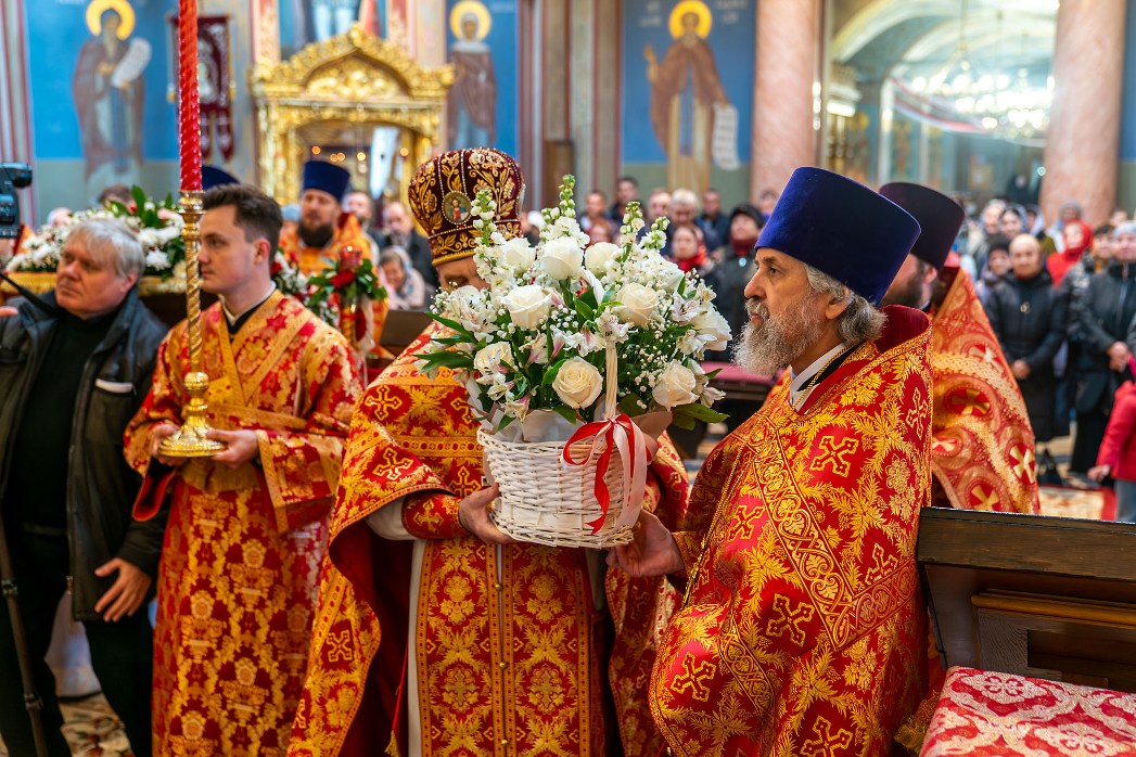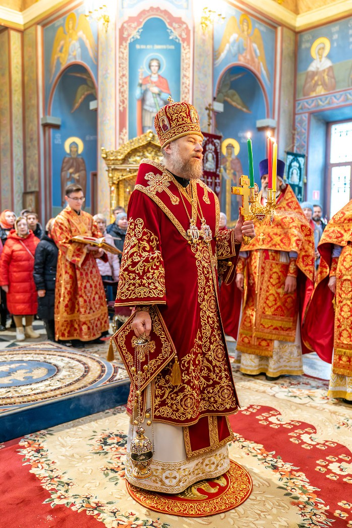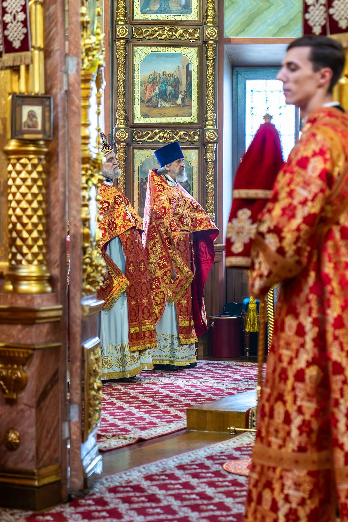 В совершении Божественной литургии Преосвященным архипастырям сослужили секретарь Воронежского епархиального управления протоиерей Андрей Скакалин; настоятель Покровского собора протоиерей Сергий Моздор; секретарь Епархиального совета Воронежской епархии, ректор Воронежской духовной семинарии священник Роман Ткачев; благочинный Центрального церковного округа протоиерей Василий Володько, секретарь Борисоглебского епархиального управления иерей Павел Приступ, секретарь Россошанского епархиального управления иерей Иаков Калинин и клирики Воронежской митрополии.