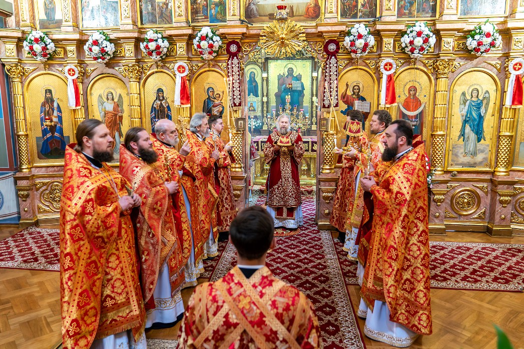 Архипастыри и священнослужители многократно приветствовали молящихся вечно живыми словами пасхального приветствия: «Христос воскресе!» Ликующими напевами воспевалась победная песнь: «Христос воскресе из мертвых, смертию смерть поправ и сущим во гробех живот даровав».