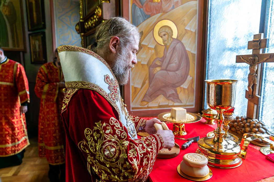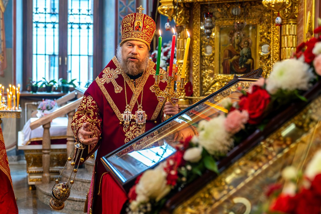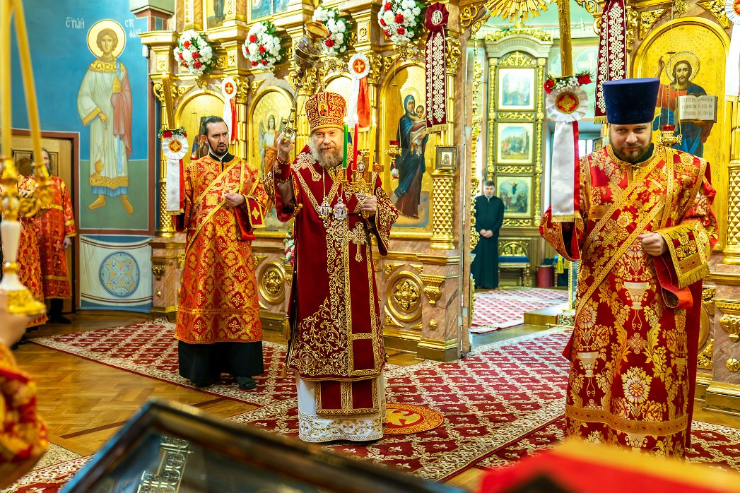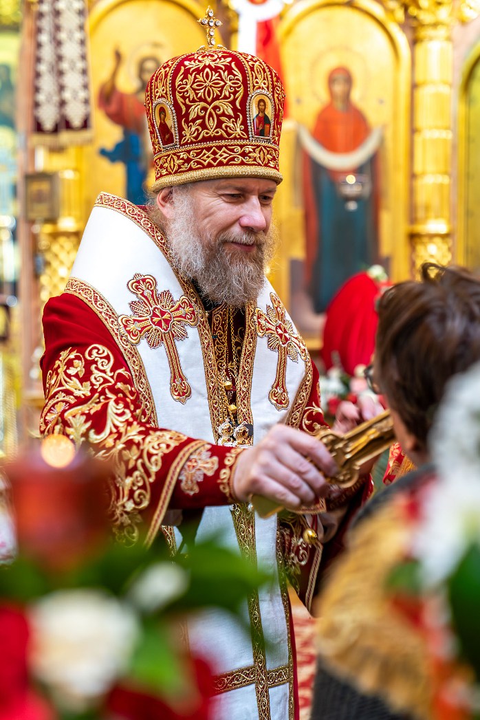 Во время чтения благодарственных молитв по Святом Причащении митрополит Леонтий преподал всем молящимся для лобызания крест.
