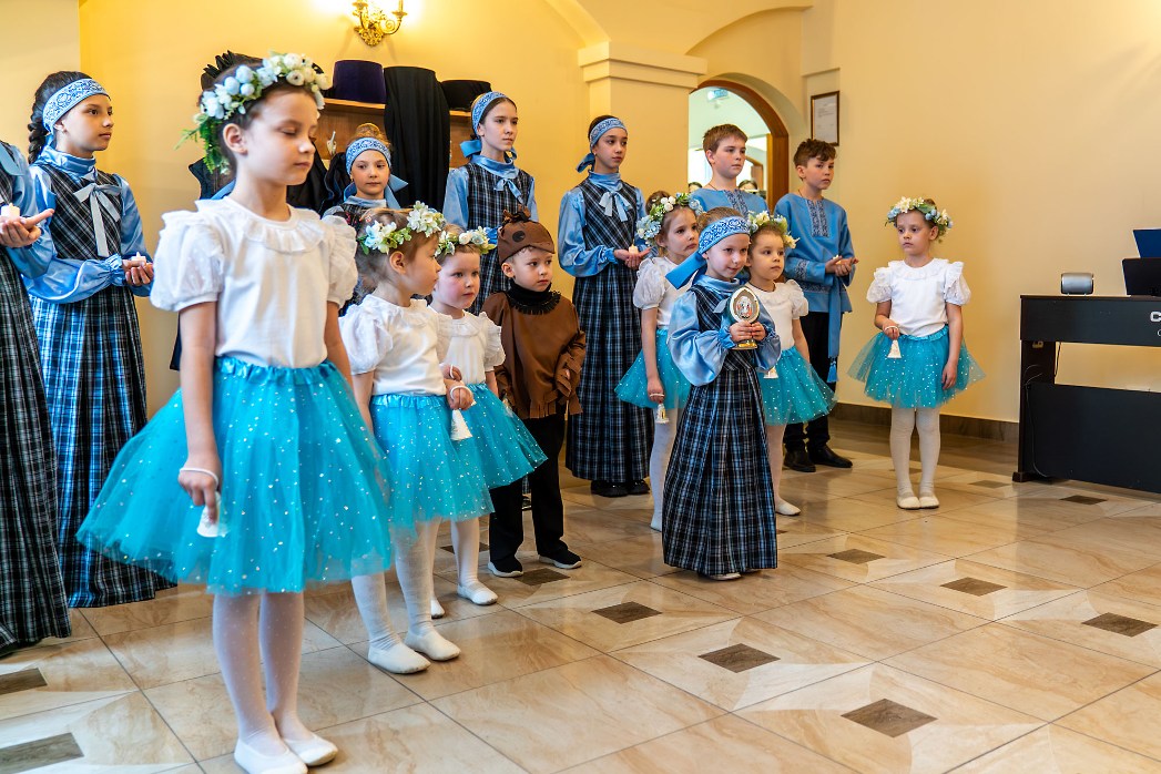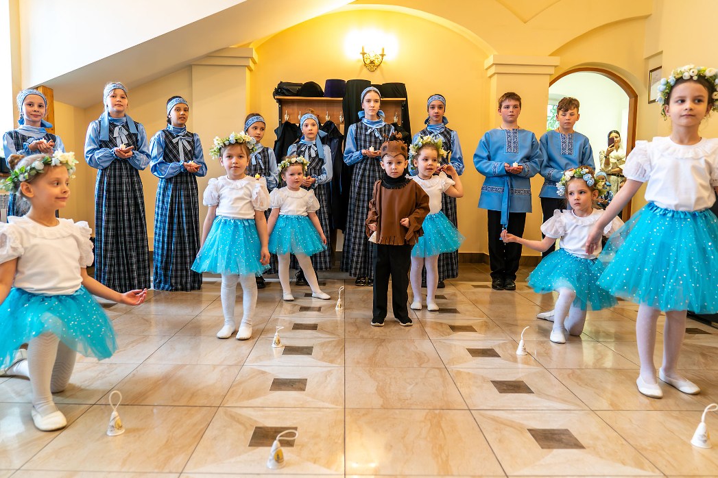 По завершении молитвенного торжества в трапезном зале духовно-просветительского центра при Покровском соборе воспитанники приходской воскресной школы выступили перед гостями с праздничной пасхальной программой.