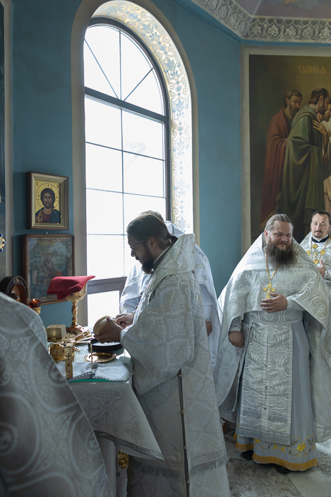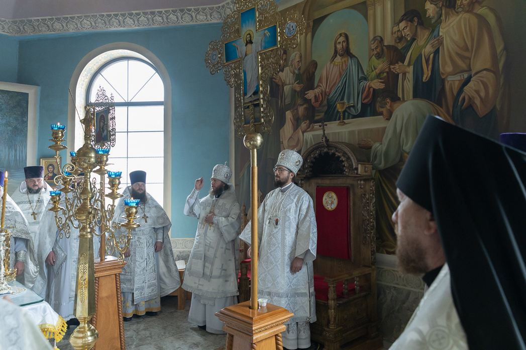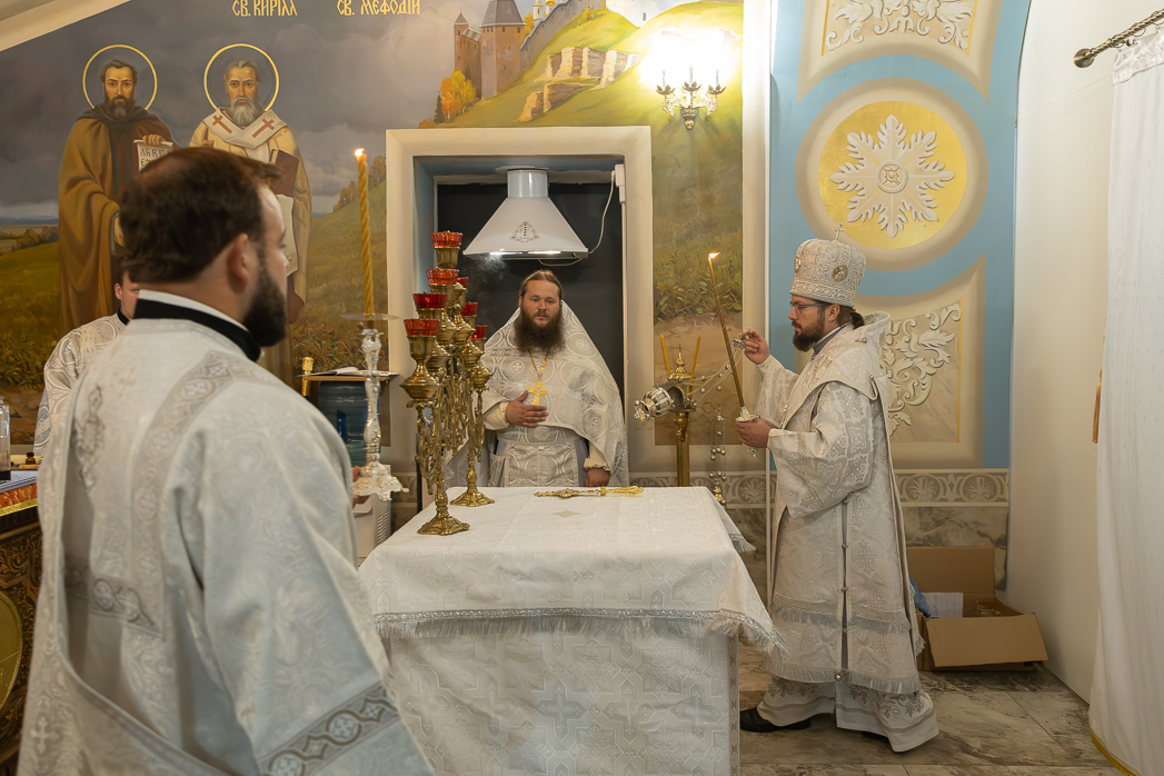 По завершении чина освящения епископ Дионисий вместе с епископом Серафимом и духовенством совершил в новоосвященном храме Божественную литургию.