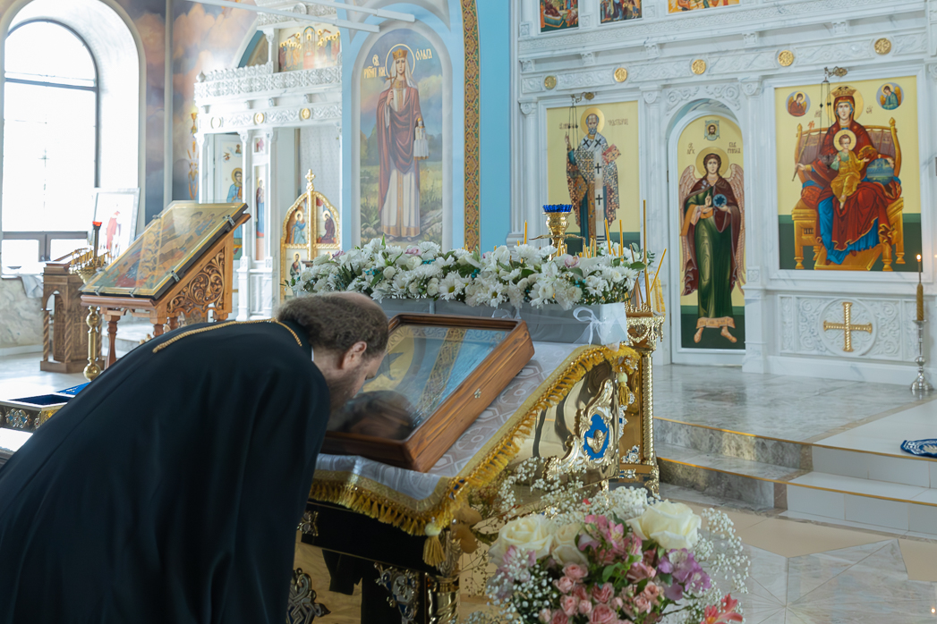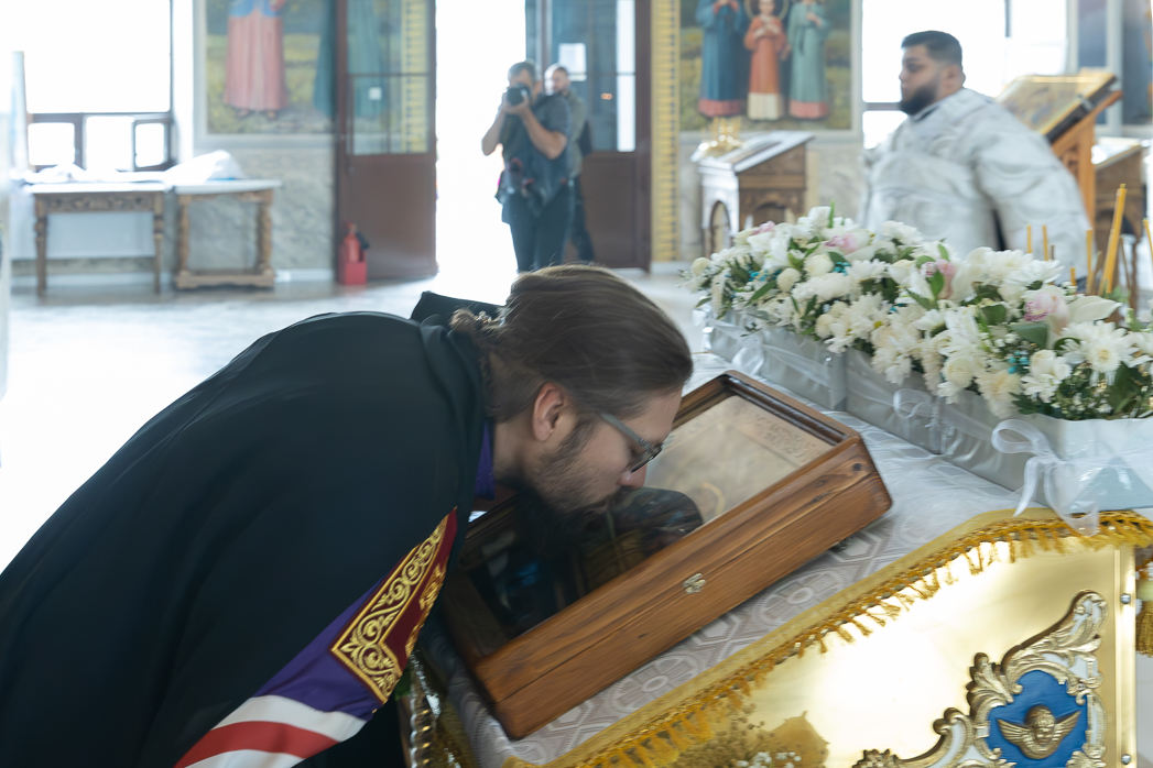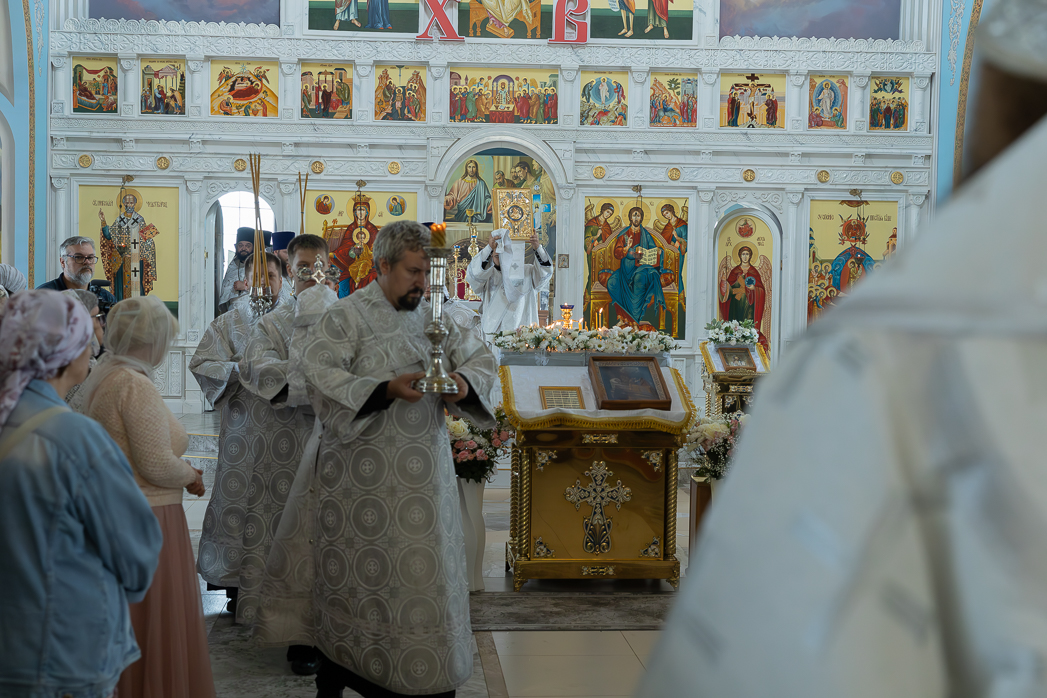 Затем Владыка Дионисий возглавил шествие со святыми мощами. По внесении в алтарь они были вложены в основание Престола.