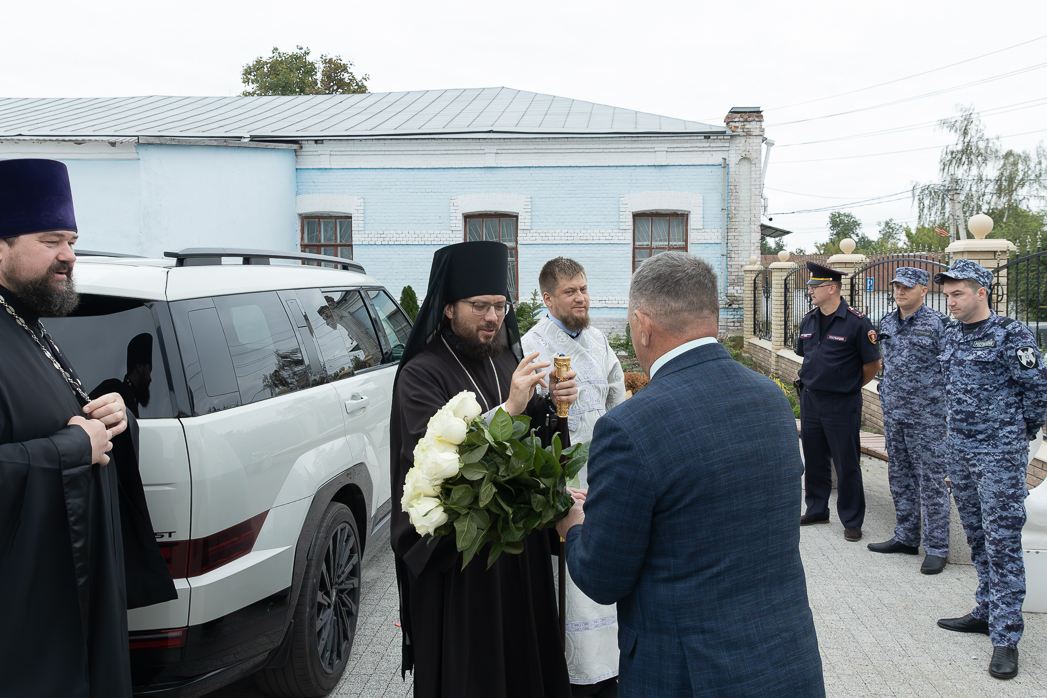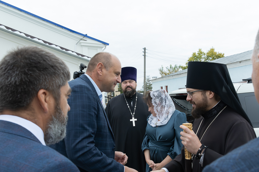 Утром множество богомольцев заполнили главный храм города. У входа в храм Правящего Архиерея встречал благочинный Калачеевского церковного округа протоиерей Евгений Бей, матушка Иулиания Ткаченко, глава администрации Калачеевского муниципального района Котолевский Николай Тимофеевич; заместитель главы администрации – руководитель отдела по образованию администрации Калачеевского муниципального района Пономарев Александр Вячеславович; глава администрации городского поселения – город Калач Дудецкий Дмитрий Николаевич.