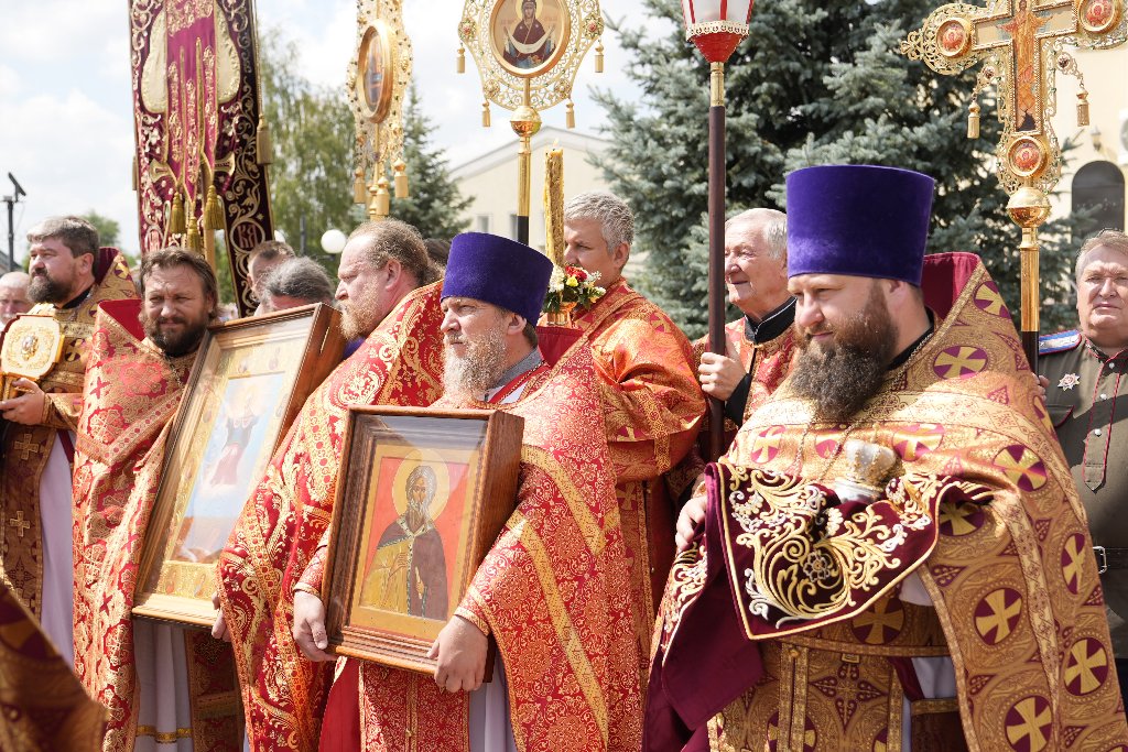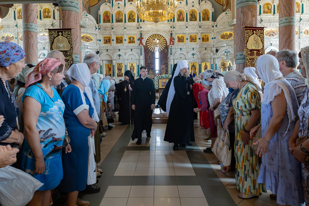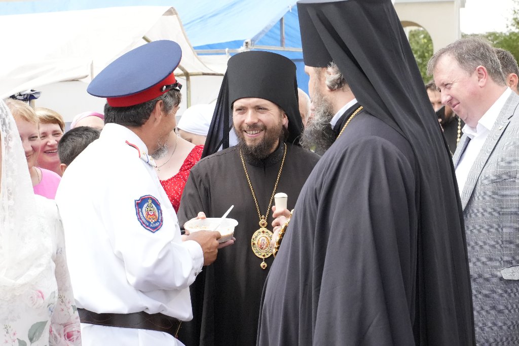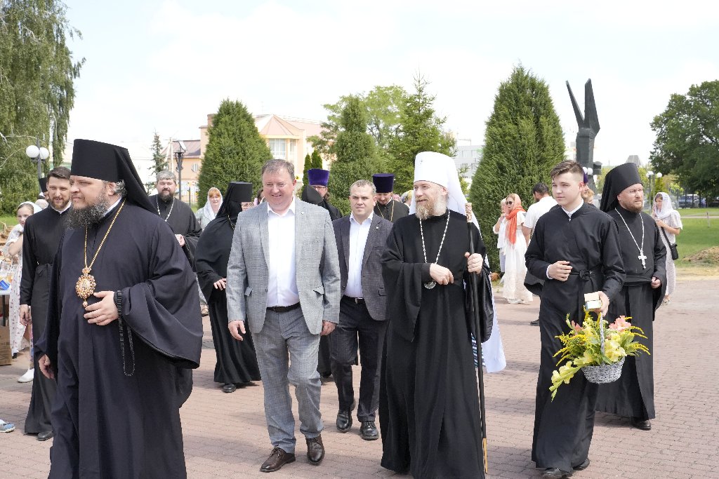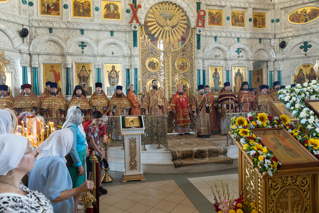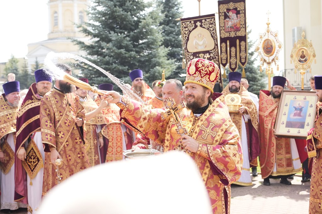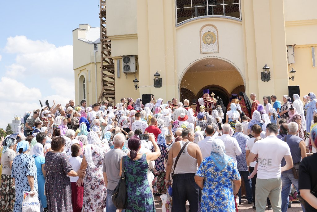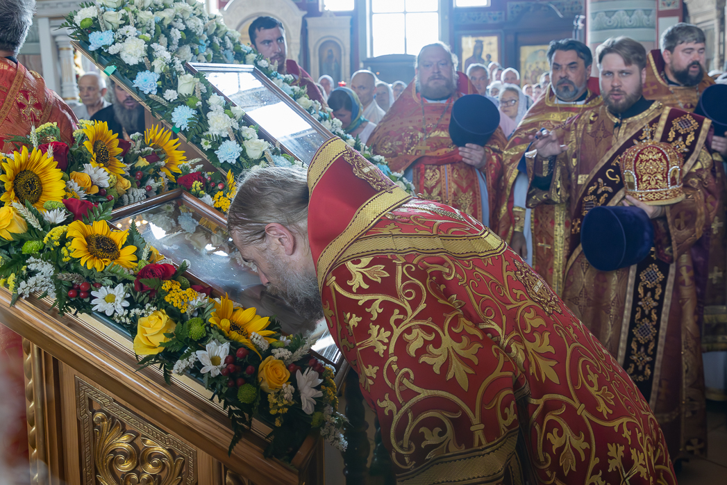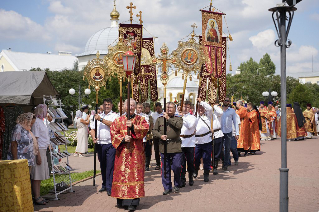 После Литургии Архипастыри совершили традиционный в дни престольных праздников крестный ход совместно с духовенством, прихожанами и паломниками.
