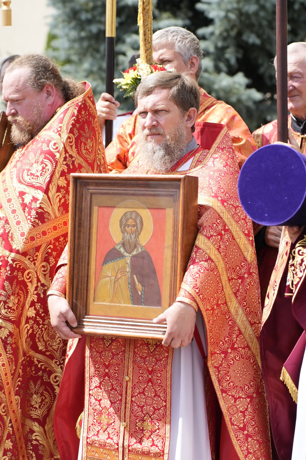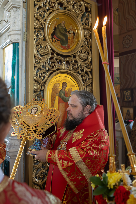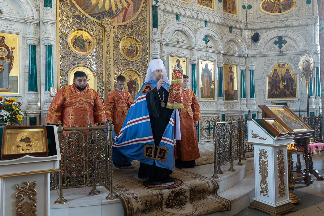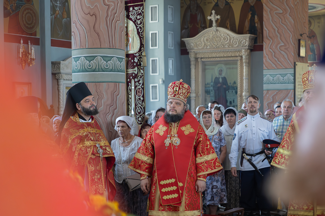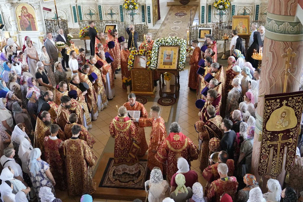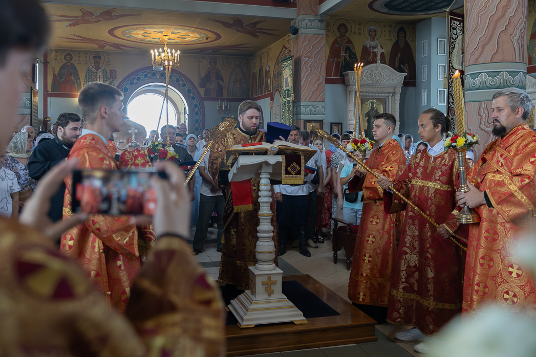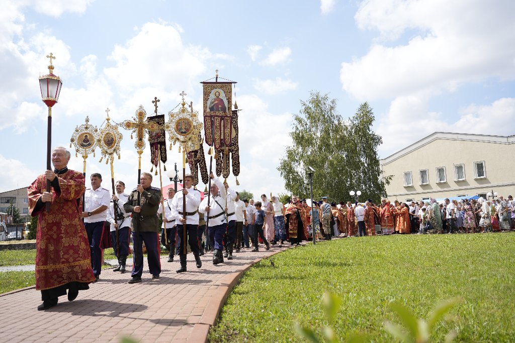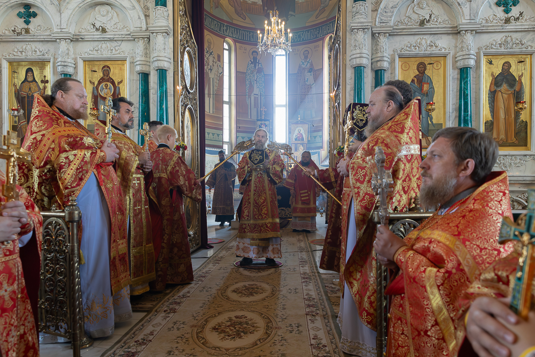 После Литургии Архипастыри совершили традиционный в дни престольных праздников крестный ход совместно с духовенством, прихожанами и паломниками.