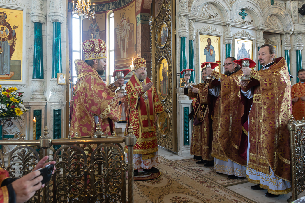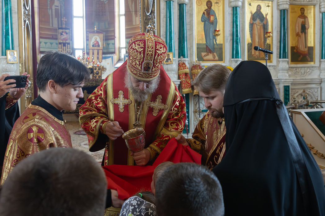 Во время чтения благодарственных молитв по Святом Причащении митрополит Леонтий преподал всем присутствующим для лобызания крест.