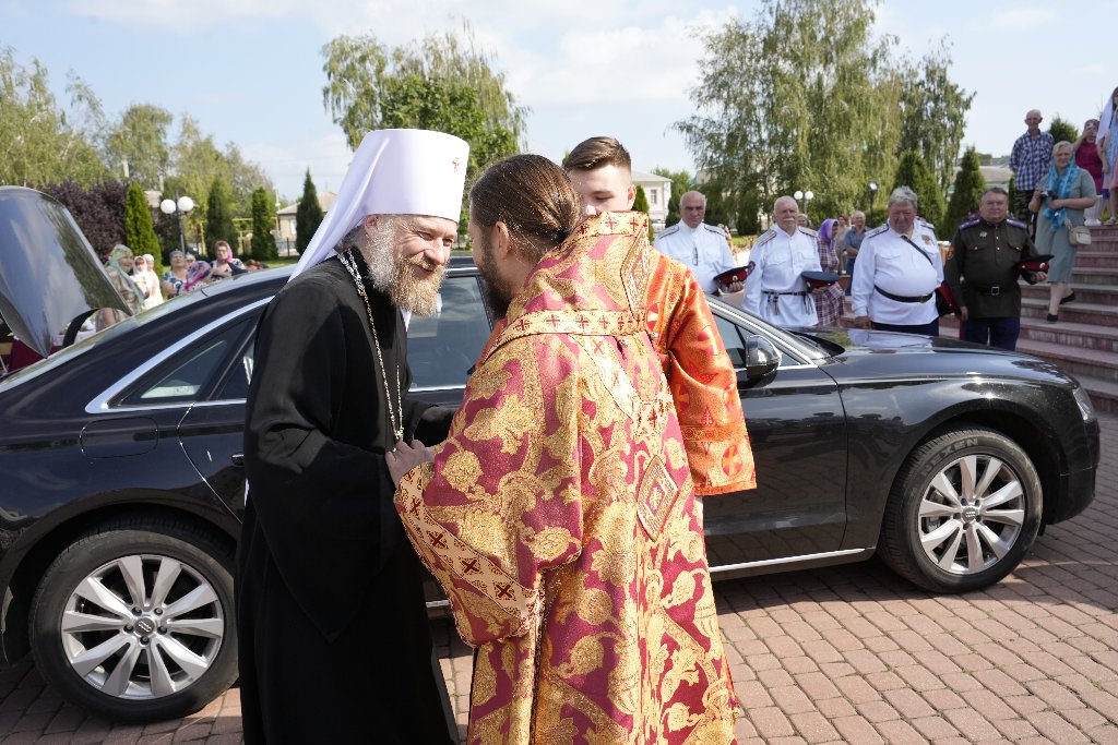У входа в собор главу митрополии встречали: Преосвященнейший Дионисий, епископ Россошанский и Острогожский, глава администрации Россошанского муниципального района Береснев Роман Николаевич, глава администрации городского поселения город Россошь Кисель Максим Сергеевич, руководитель отдела образования и молодёжной политики администрации Россошанского муниципального района Домнич Инна Сергеевна, секретарь Россошанского Епархиального управления иерей Иаков Калинин, честное казачество, многочисленные жители и гости Россошанского района.