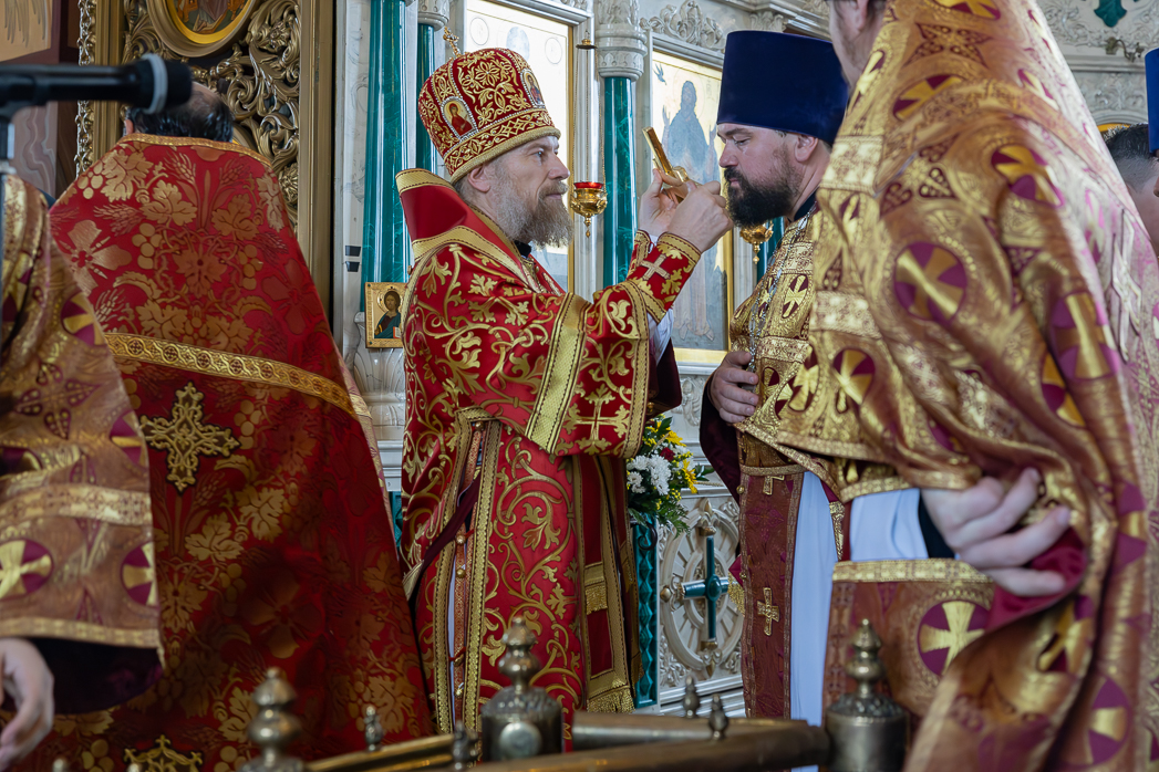 По запричастном стихе с проповедью обратился благочинный Монастырского церковного округа игумен Илия (Ждамиров). Он поздравил всех с праздником и рассказал о житии славного пророка Божия Илии, призвав брать пример с него в ревности по вере, любви к Богу и Его заповедям.