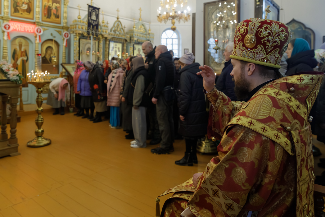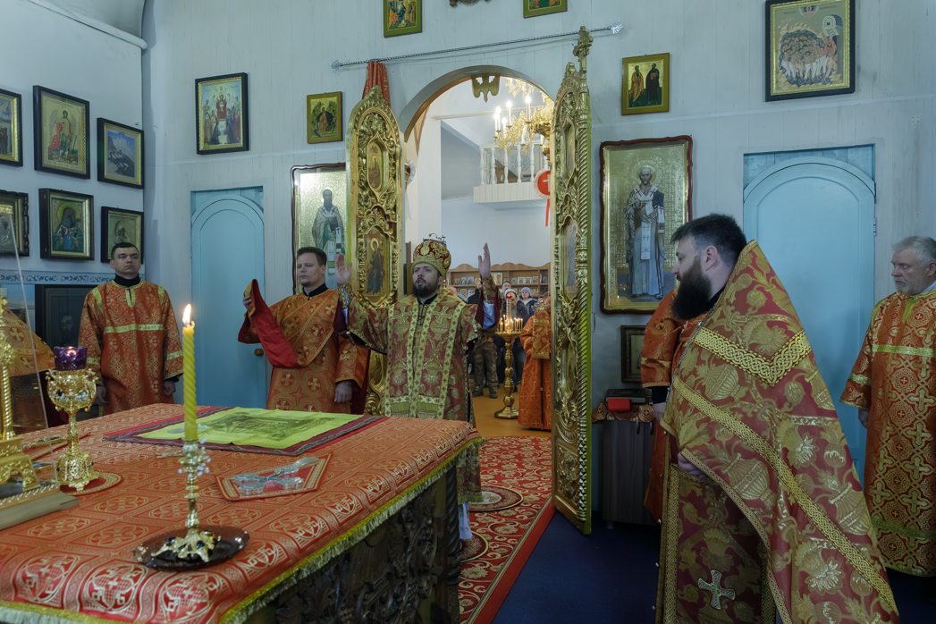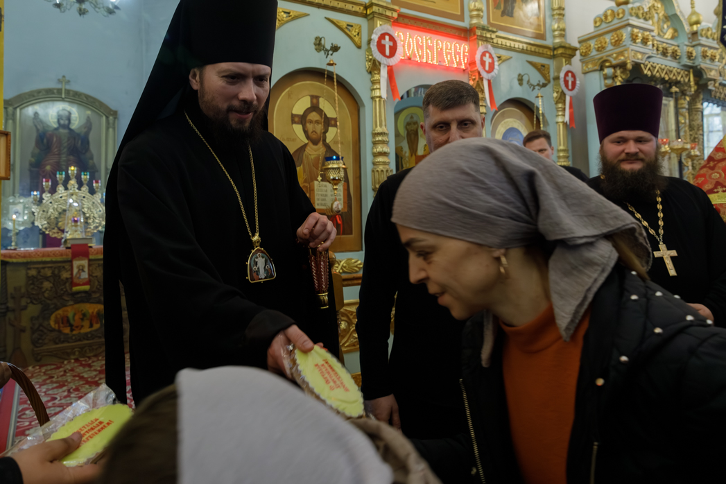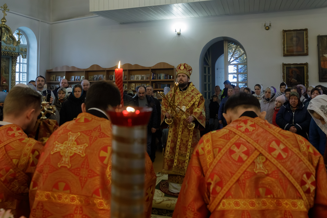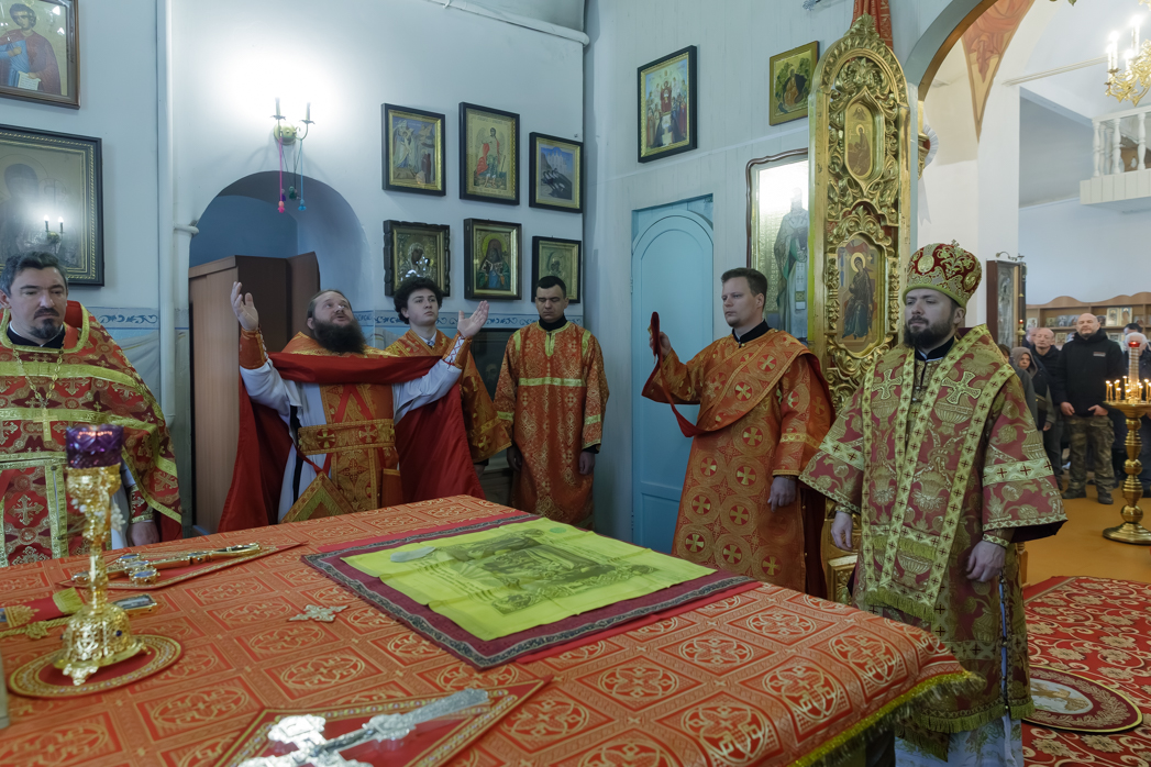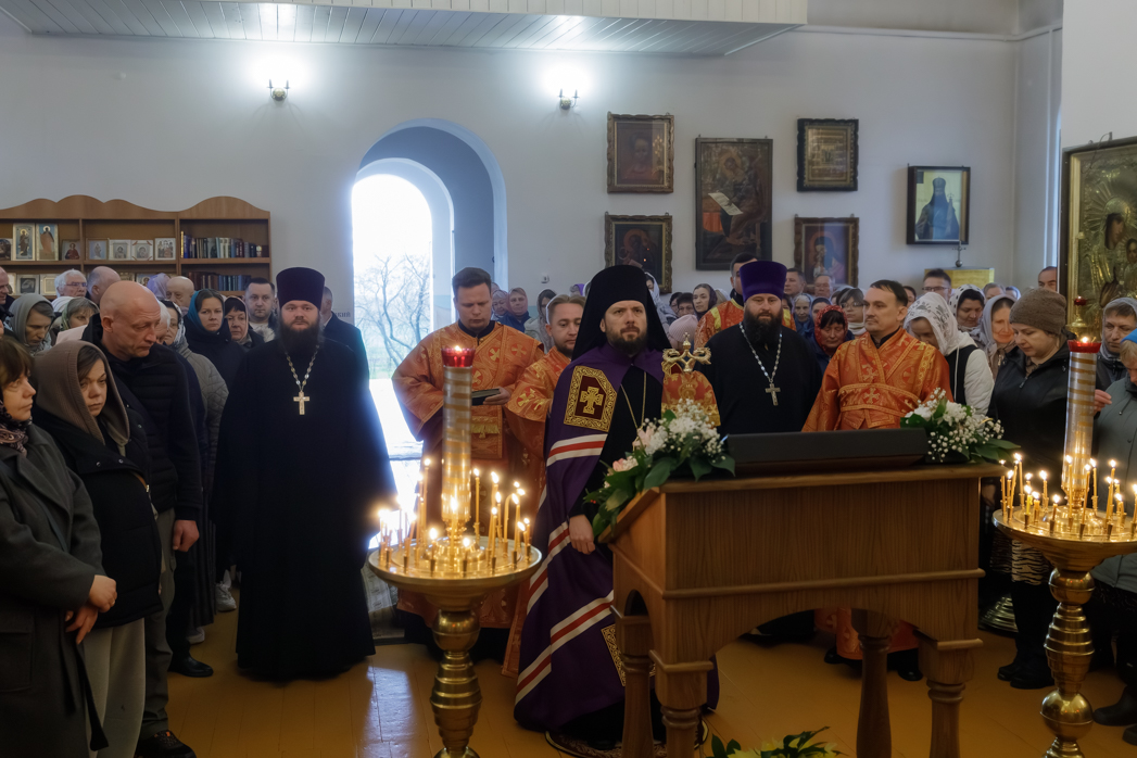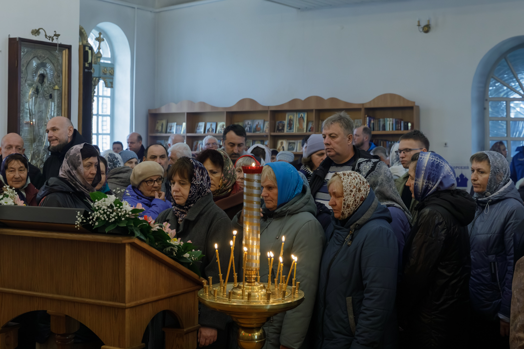 На сугубой ектении были произнесены прошения: «...о еже прияти молитвы нас недостойных рабов Твоих в сию годину испытания, пришедшую на Русь Святую...», а также прошение о «Преосвященных архипастырях, пастырях, монашествующих и мирянах земли Украинския, о единстве Церкви Христовы ревнующих, в заточении и гонениях сущих». Затем епископ Дионисий вознес молитву о Святой Руси. По благословению Святейшего Патриарха Московского и всея Руси Кирилла эта молитва возносится во всех храмах Русской Православной Церкви.
