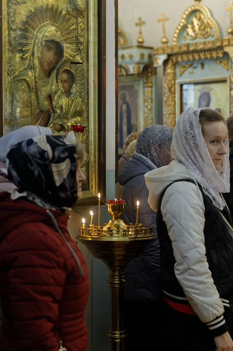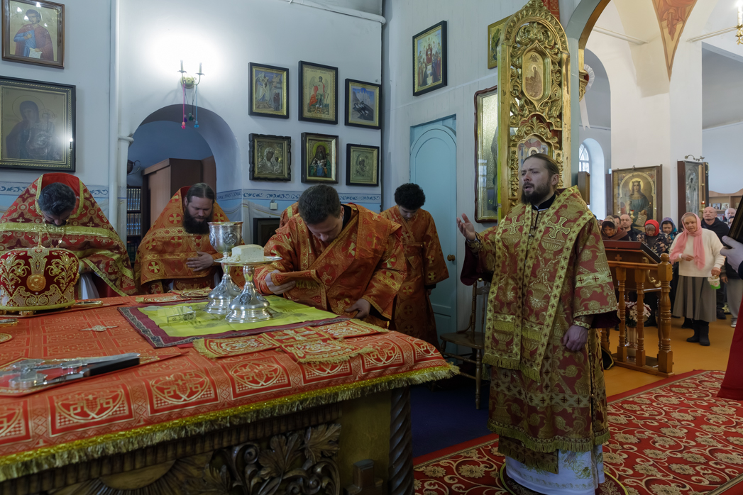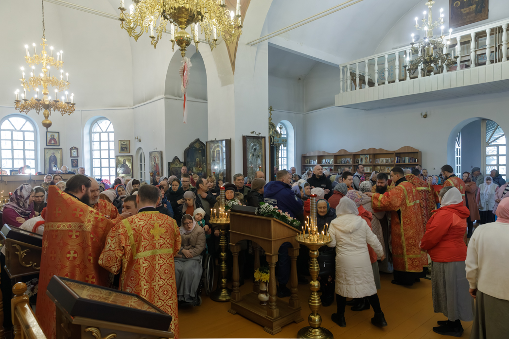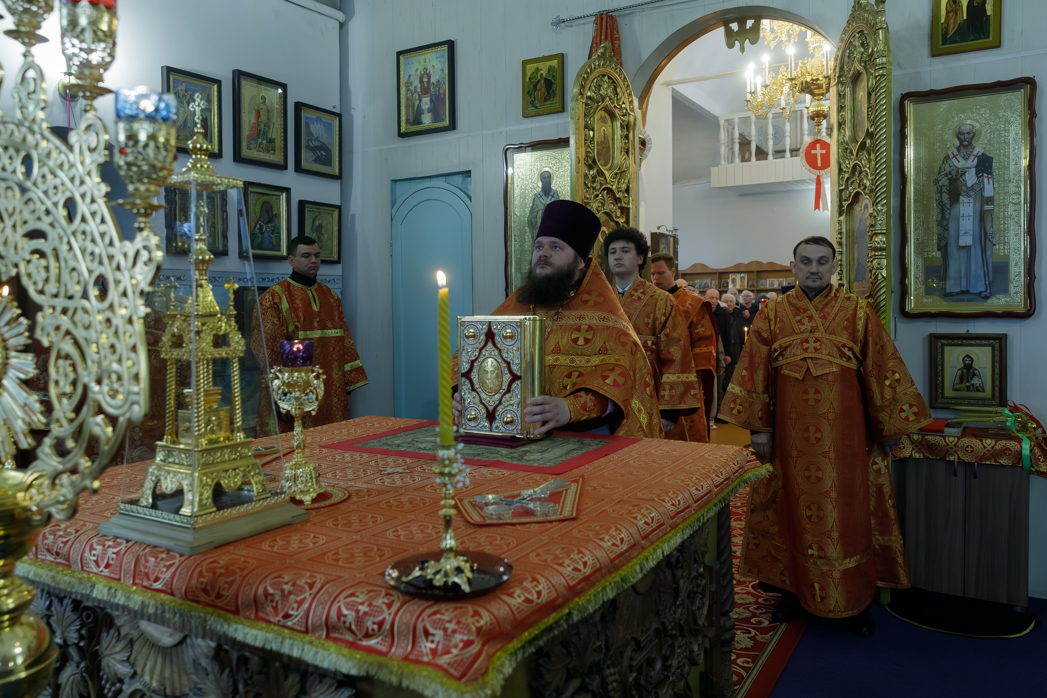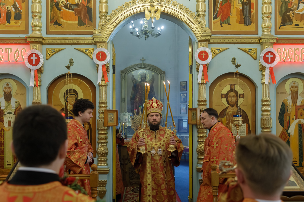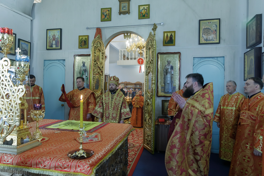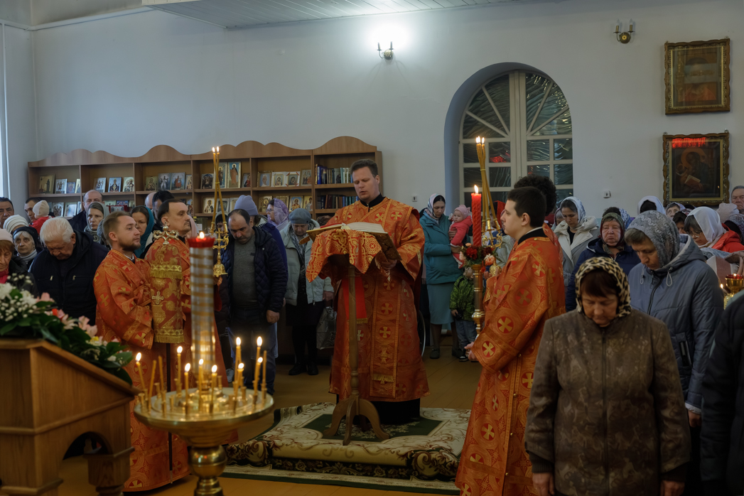 На сугубой ектении были произнесены прошения: «...о еже прияти молитвы нас недостойных рабов Твоих в сию годину испытания, пришедшую на Русь Святую...», а также прошение о «Преосвященных архипастырях, пастырях, монашествующих и мирянах земли Украинския, о единстве Церкви Христовы ревнующих, в заточении и гонениях сущих». Затем епископ Дионисий вознес молитву о Святой Руси. По благословению Святейшего Патриарха Московского и всея Руси Кирилла эта молитва возносится во всех храмах Русской Православной Церкви.
