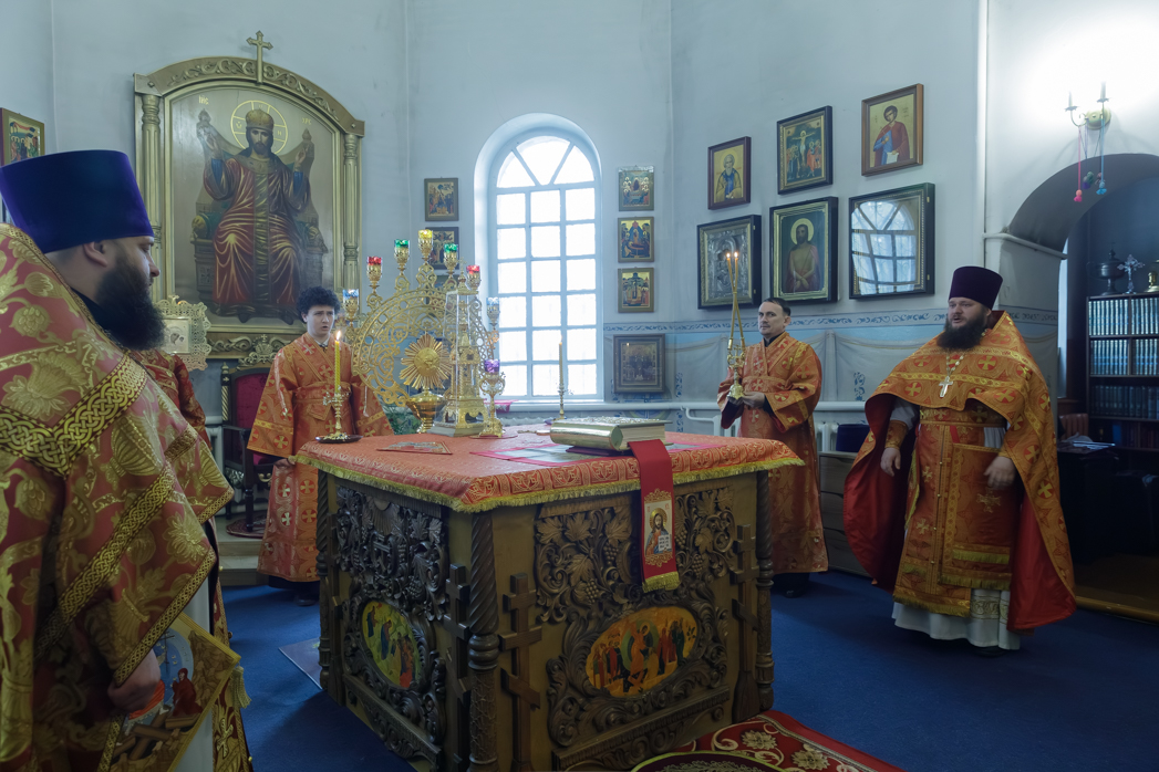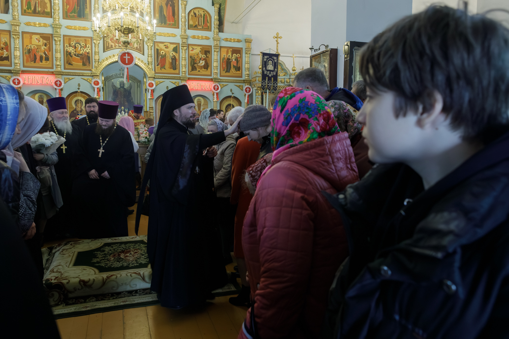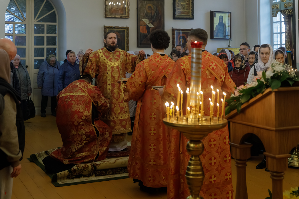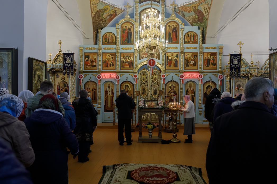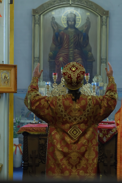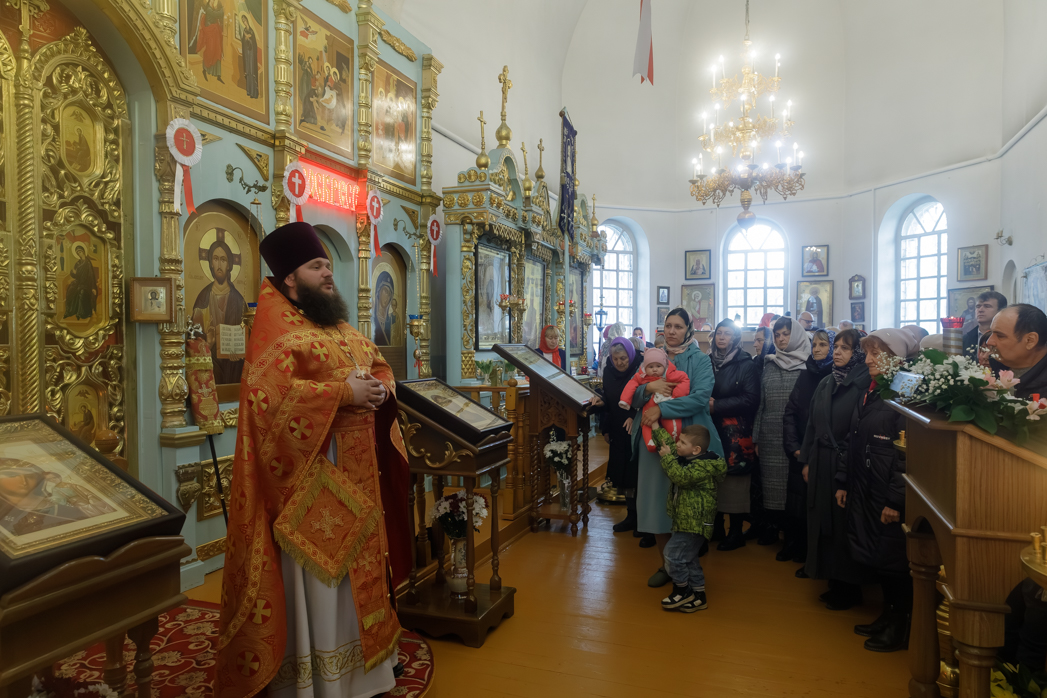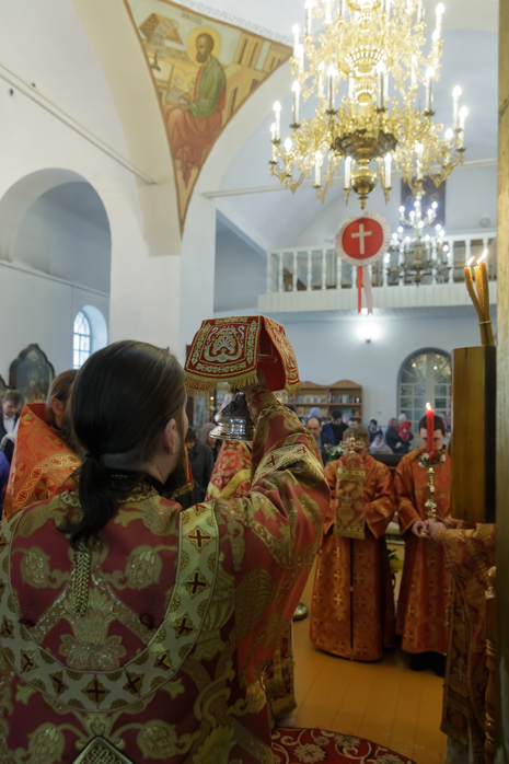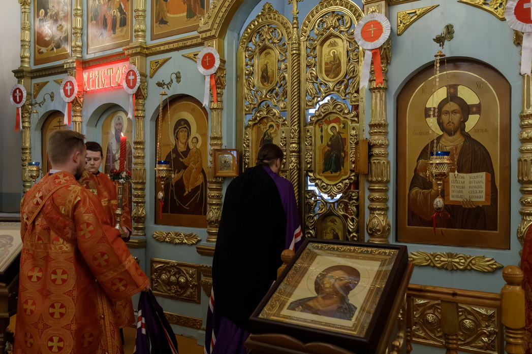 На сугубой ектении были произнесены прошения: «...о еже прияти молитвы нас недостойных рабов Твоих в сию годину испытания, пришедшую на Русь Святую...», а также прошение о «Преосвященных архипастырях, пастырях, монашествующих и мирянах земли Украинския, о единстве Церкви Христовы ревнующих, в заточении и гонениях сущих». Затем епископ Дионисий вознес молитву о Святой Руси. По благословению Святейшего Патриарха Московского и всея Руси Кирилла эта молитва возносится во всех храмах Русской Православной Церкви.