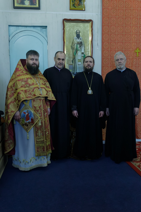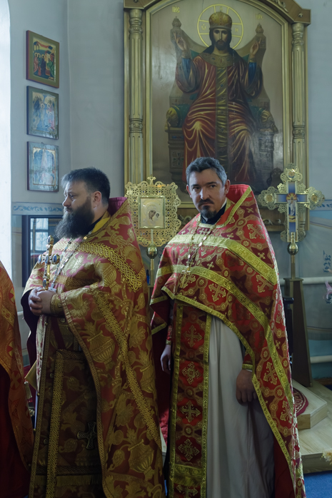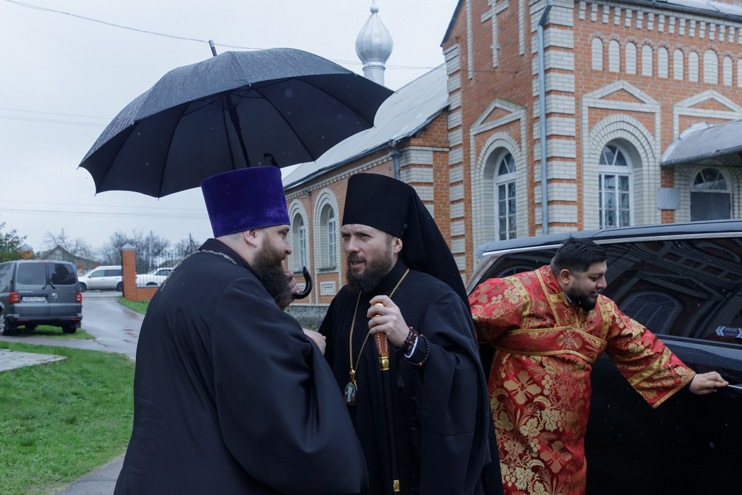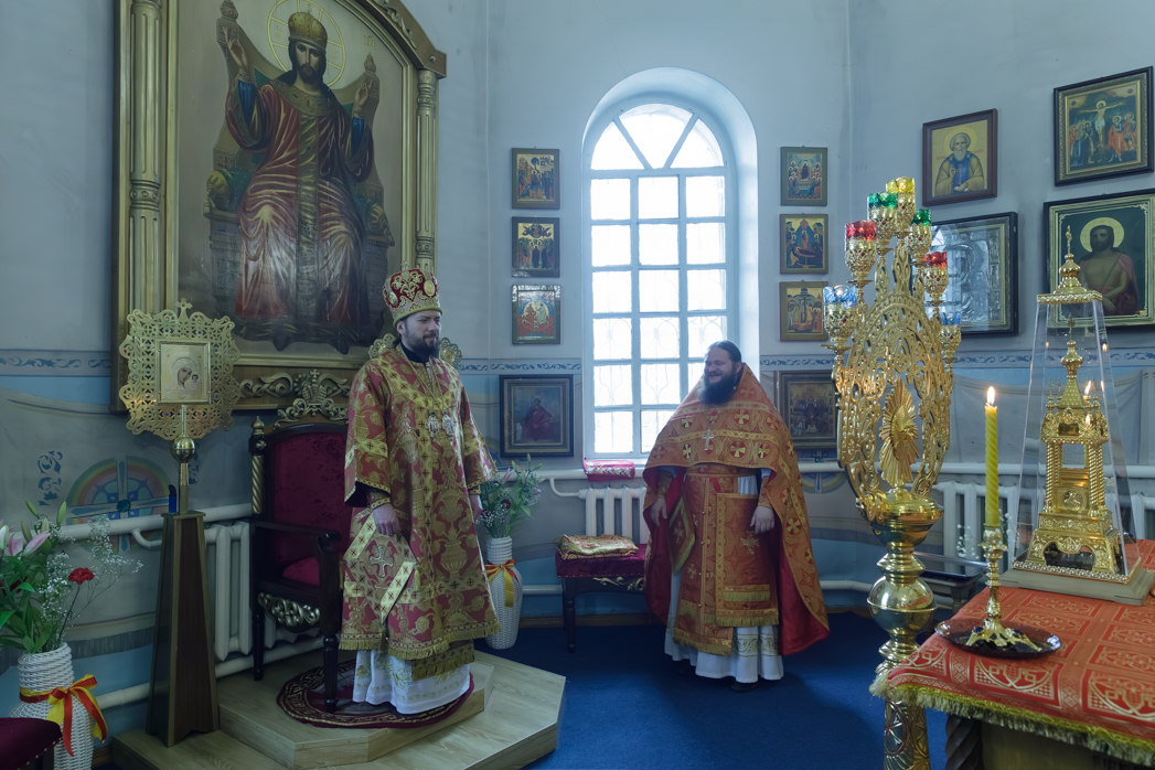 Его Преосвященству сослужили: секретарь Россошанского епархиального управления иерей Иаков Калинин, благочинный Каменского церковного округа иерей Сергий Папин и настоятель храма Успения Пресвятой Богородицы села Трехстенки иерей Артемий Фисенко.