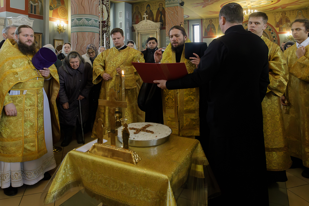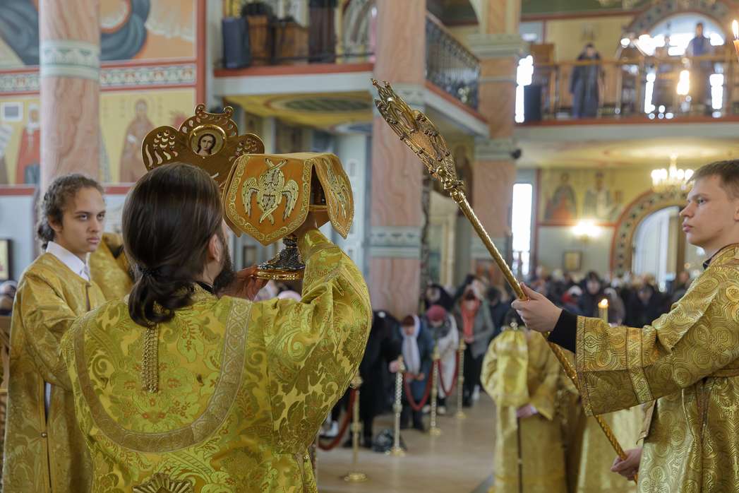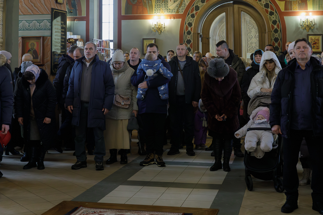 На сугубой ектении были произнесены прошения: «...о еже прияти молитвы нас недостойных рабов Твоих в сию годину испытания...» и прошение о «Преосвященных архипастырях, пастырях, монашествующих и мирянах земли Украинския, о единстве Церкви Христовы ревнующих, в заточении и гонениях сущих». Затем епископ Дионисий вознес молитву о Святой Руси. По благословению Святейшего Патриарха Московского и всея Руси Кирилла эта молитва читается во всех храмах Русской Православной Церкви.