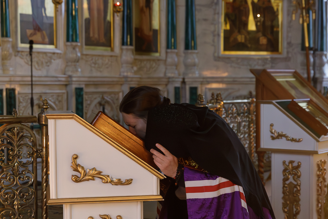 После пения молитвы Господней «Отче наш» и запричастного стиха с проповедью к молящимся обратился иподиакон Лев Грицаенко.