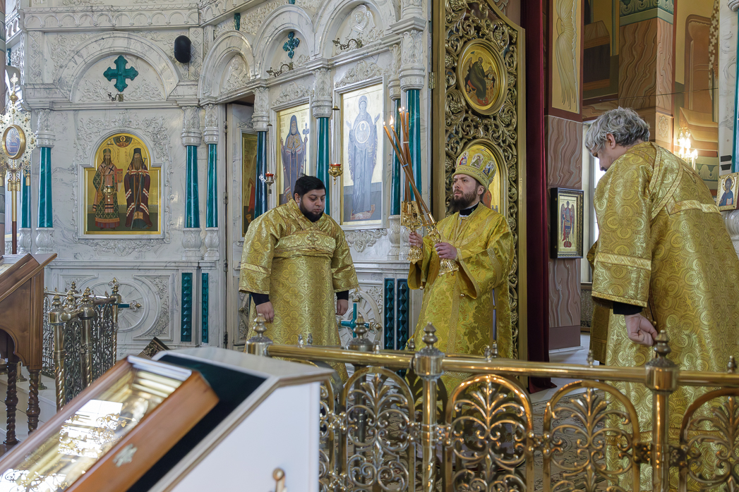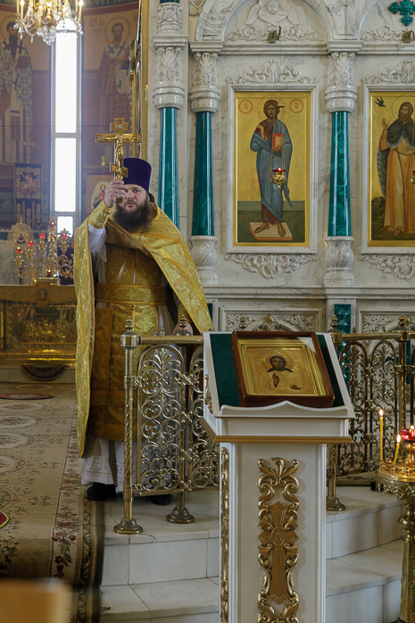 Богослужебные песнопения исполнил хор собора под управлением регента Марины Куделиной.