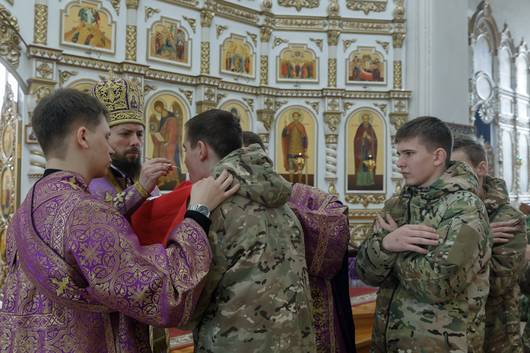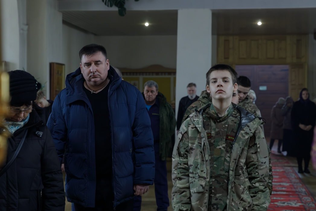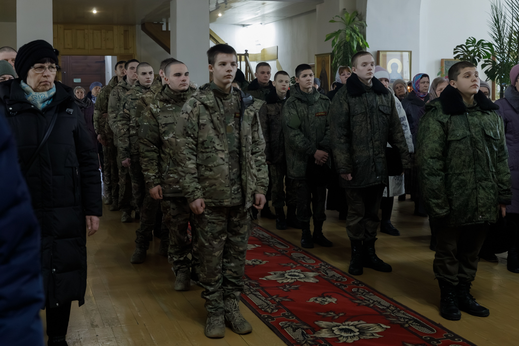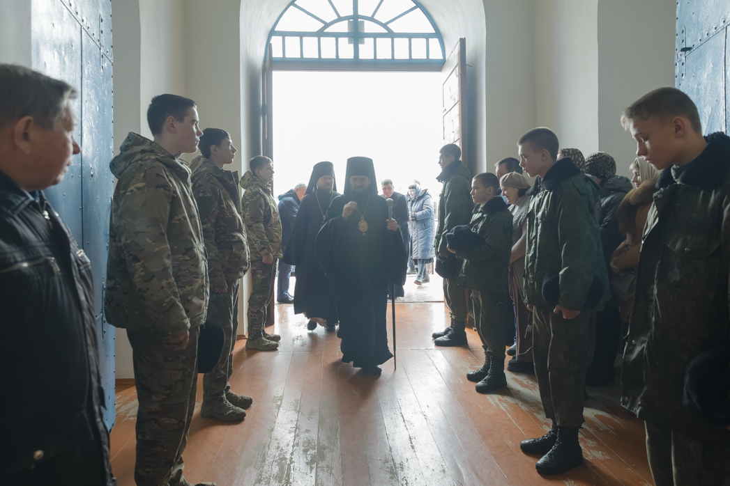 За Литургией молились директор Верхнемамонского Матвея Платова казачьего кадетского корпуса Виктор Владимирович Сорокин, казачий полковник Николай Дмитриевич Мартынчук вместе с воспитанниками кадетского корпуса.