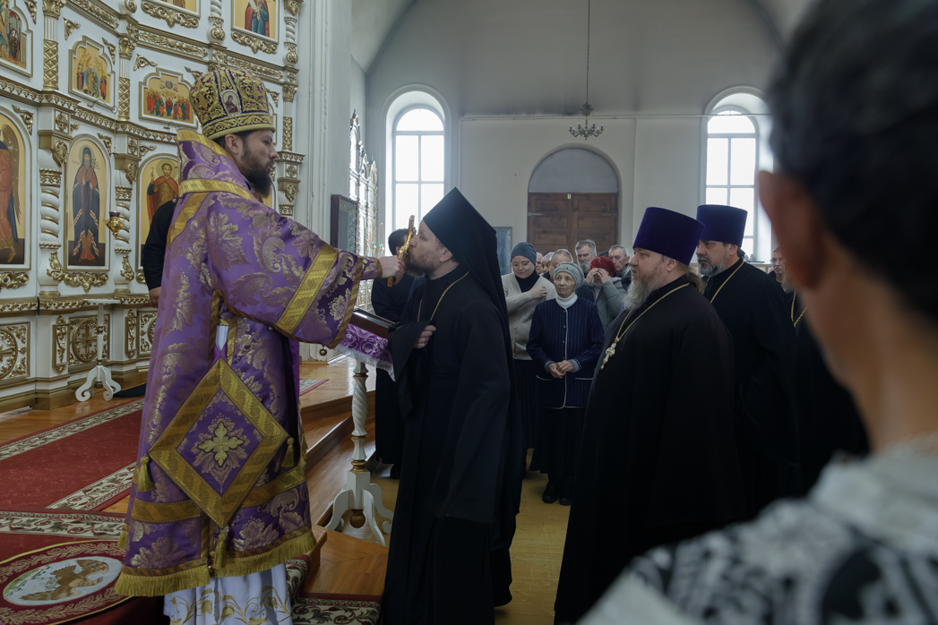 Во время чтения благодарственных молитв по Святом Причащении епископ Дионисий преподал богомольцам для лобызания крест.