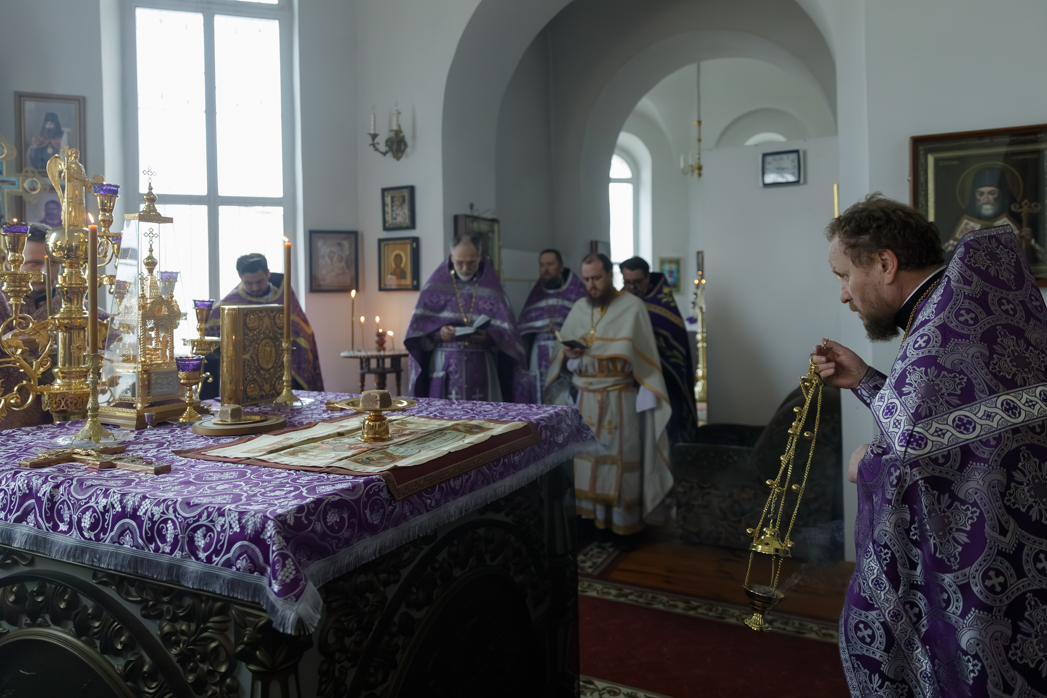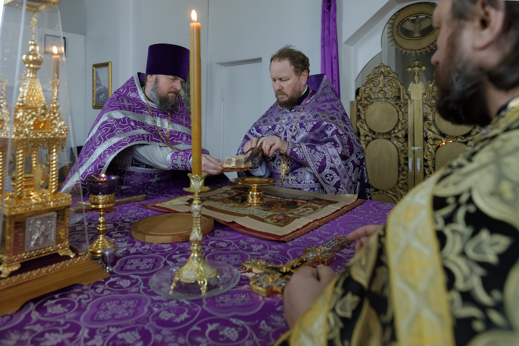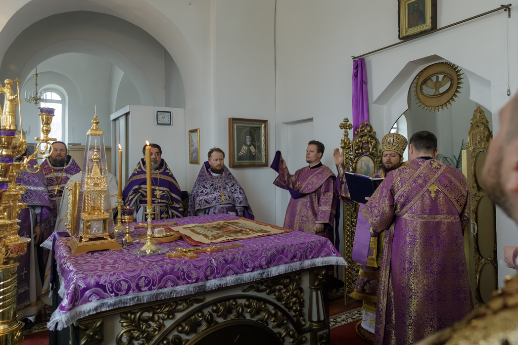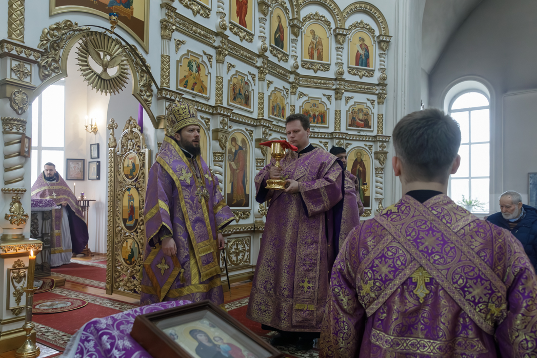 9 марта, в понедельник 3-й седмицы Великого поста, память первого и второго обретения главы Пророка, Предтечи и Крестителя Господня Иоанна, Преосвященнейший Дионисий, епископ Россошанский и Острогожский, совершил Литургию Преждеосвященных Даров в храме святителя Митрофана, первого епископа Воронежского, села Верхний Мамон.