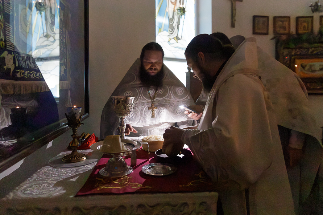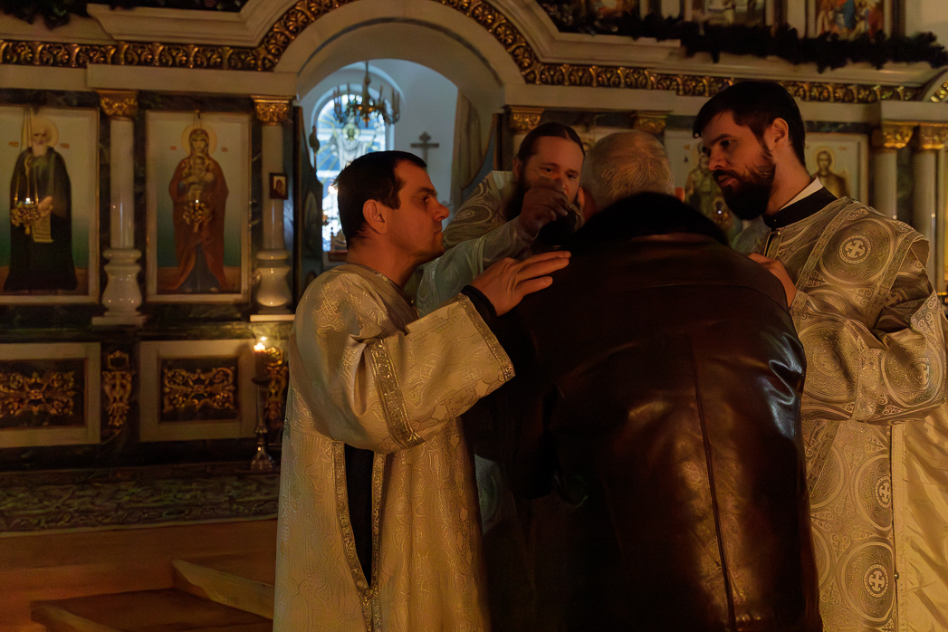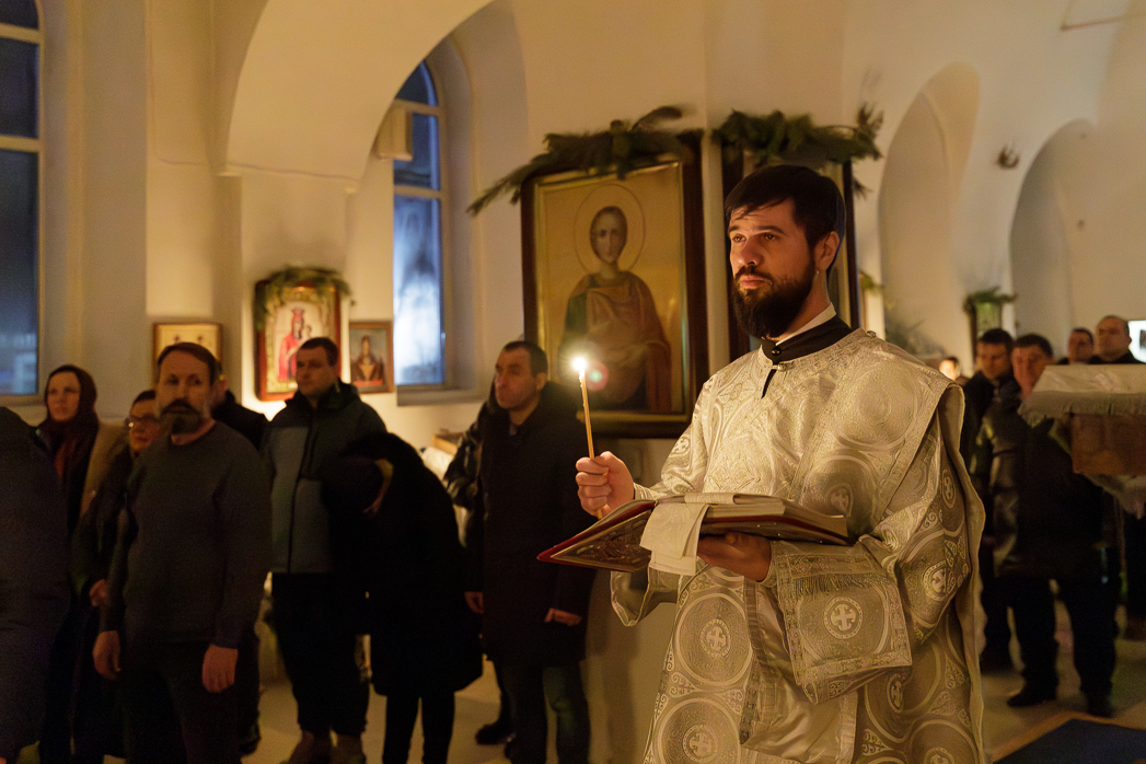 На сугубой ектении были произнесены прошения: «...о еже прияти молитвы нас, недостойных рабов Твоих, в сию годину испытания...» и прошение о «Преосвященных архипастырях, пастырях, монашествующих и мирянах земли Украинския, о единстве Церкви Христовой ревнующих, в заточении и гонениях сущих». Затем епископ Дионисий вознес молитву о Святой Руси. По благословению Святейшего Патриарха Московского и всея Руси Кирилла эта молитва возносится во всех храмах Русской Православной Церкви.