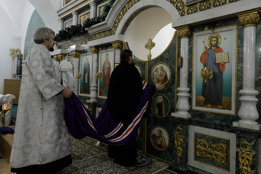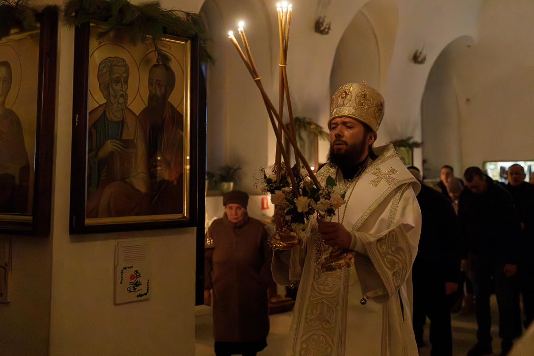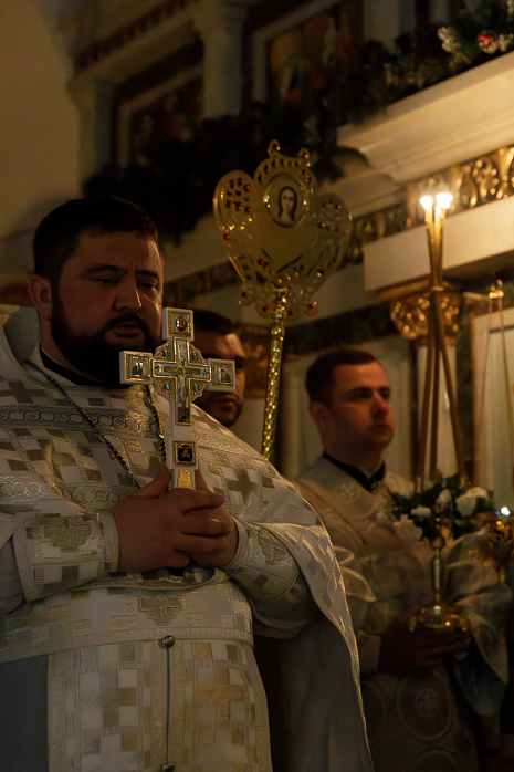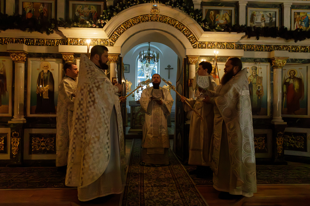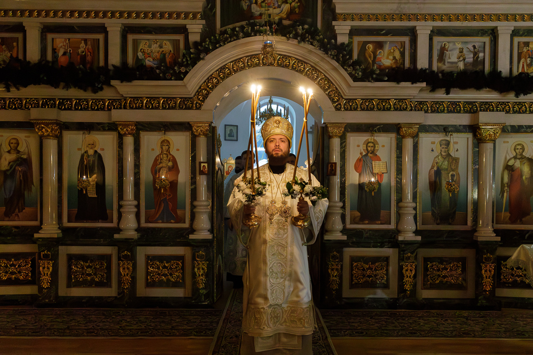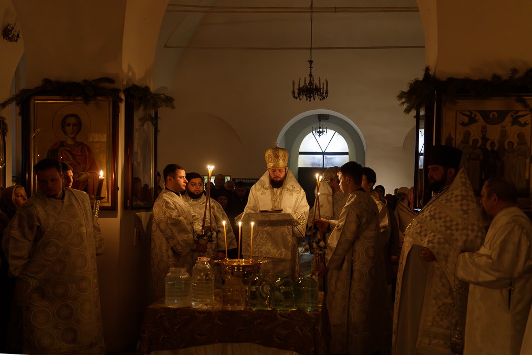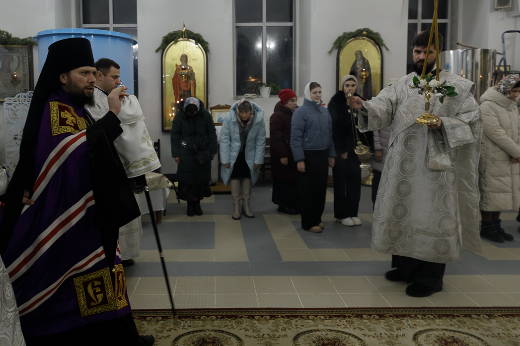 В ночь с 18 на 19 января, праздник Святого Богоявления – Крещения Господа Бога и Спаса нашего Иисуса Христа, Преосвященнейший Дионисий, епископ Россошанский и Острогожский, совершил Божественную литургию святителя Василия Великого и чин великого освящения воды в храме иконы Божией Матери «Казанская» города Павловска.