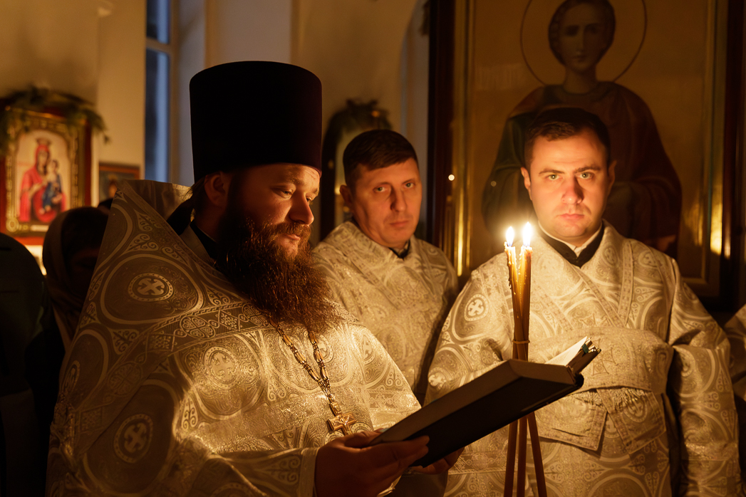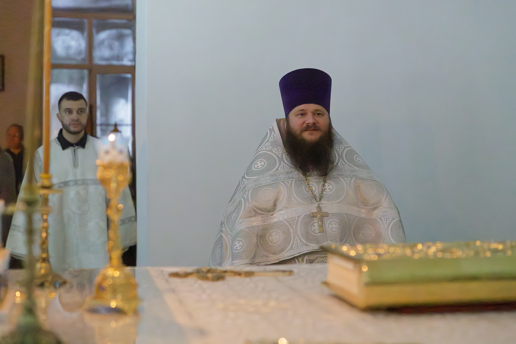 Его Преосвященству сослужили: секретарь Россошанского епархиального управления иерей Иаков Калинин и благочинный Павловского церковного округа, настоятель Казанского храма иерей Максим Богомолов.