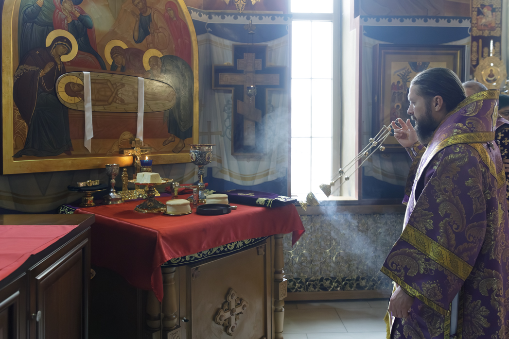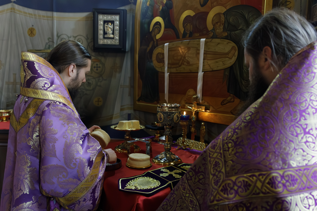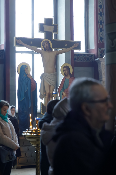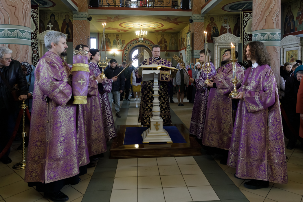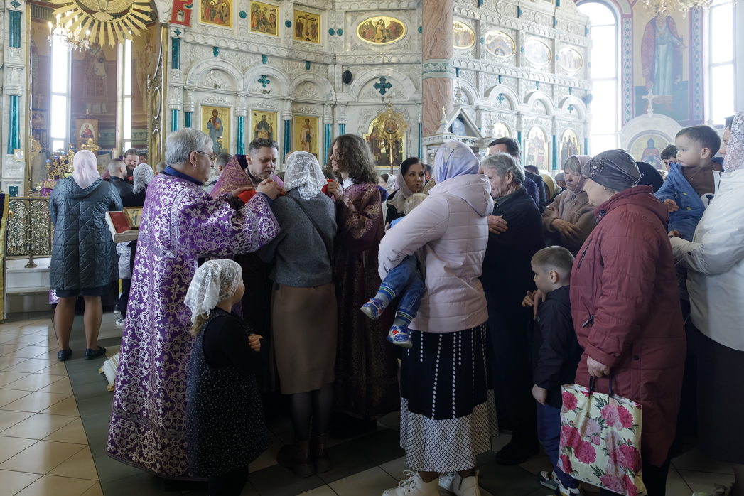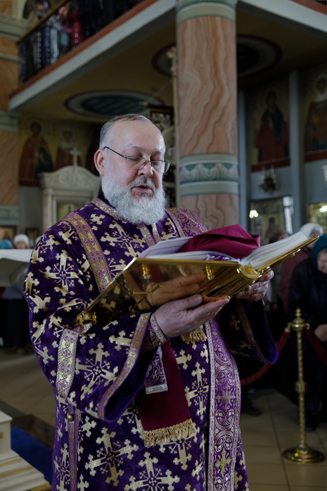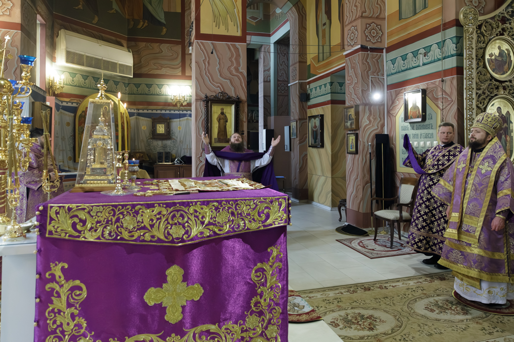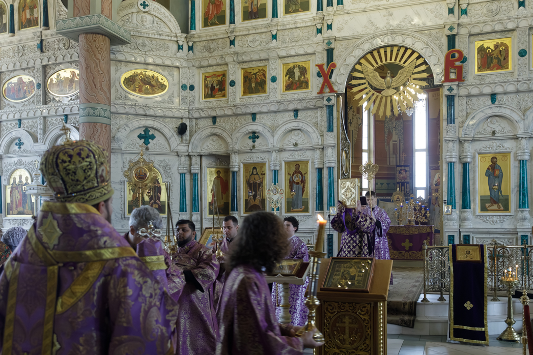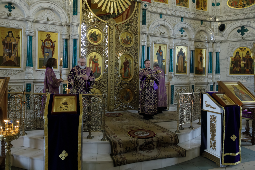 На сугубой ектении были произнесены прошения: «...о еже прияти молитвы нас, недостойных рабов Твоих, в сию годину испытания...» и прошение о «Преосвященных архипастырях, пастырях, монашествующих и мирянах земли Украинския, о единстве Церкви Христовы ревнующих, в заточении и гонениях сущих». Затем епископ Дионисий вознес молитву о Святой Руси. По благословению Святейшего Патриарха Московского и всея Руси Кирилла эта молитва читается во всех храмах Русской Православной Церкви.