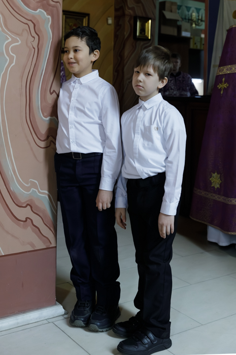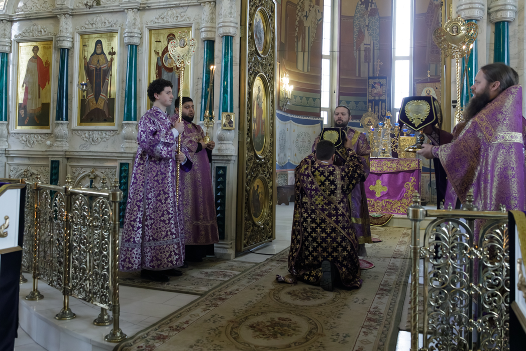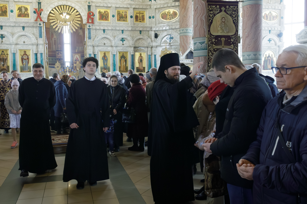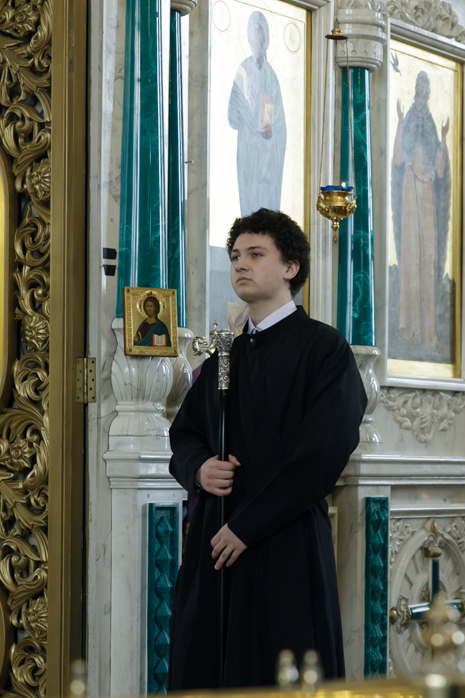После пения молитвы Господней «Отче наш» и запричастного стиха в алтаре собора епископ Дионисий благословил пономаря Артемия Пуленко на ношение подрясника.