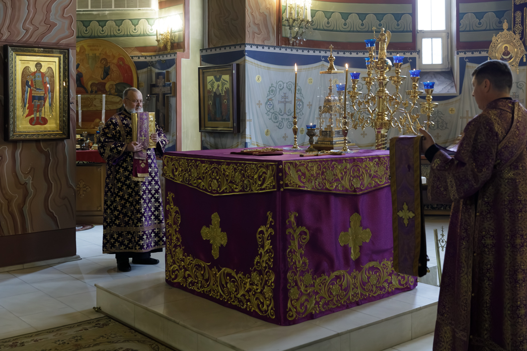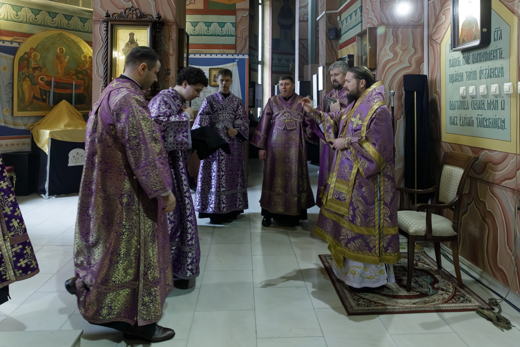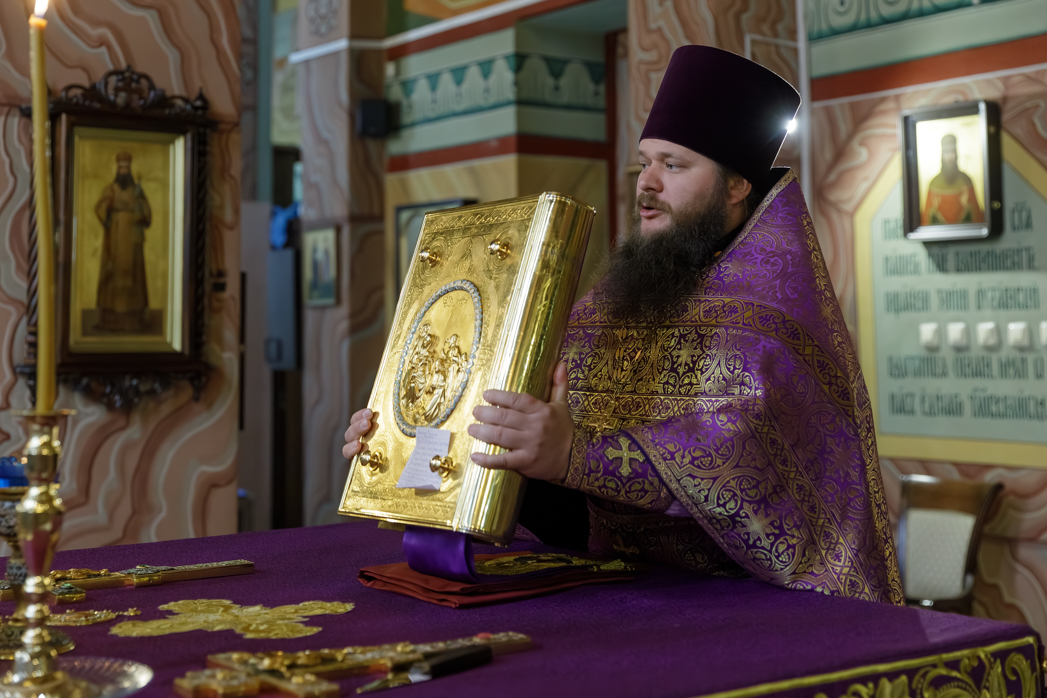 Его Преосвященству сослужили: секретарь епархиального управления, благочинный Россошанского церковного округа иерей Иаков Калинин; благочинный Свято-Ильинского кафедрального собора города Россоши иерей Алексий Кувалдин и клирик собора иерей Константин Деркачев.