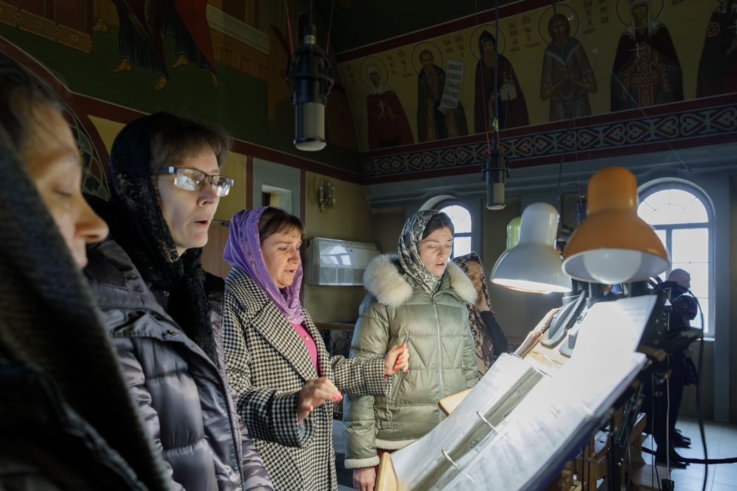 Богослужебные песнопения исполнил хор собора под управлением регента Марины Куделиной.