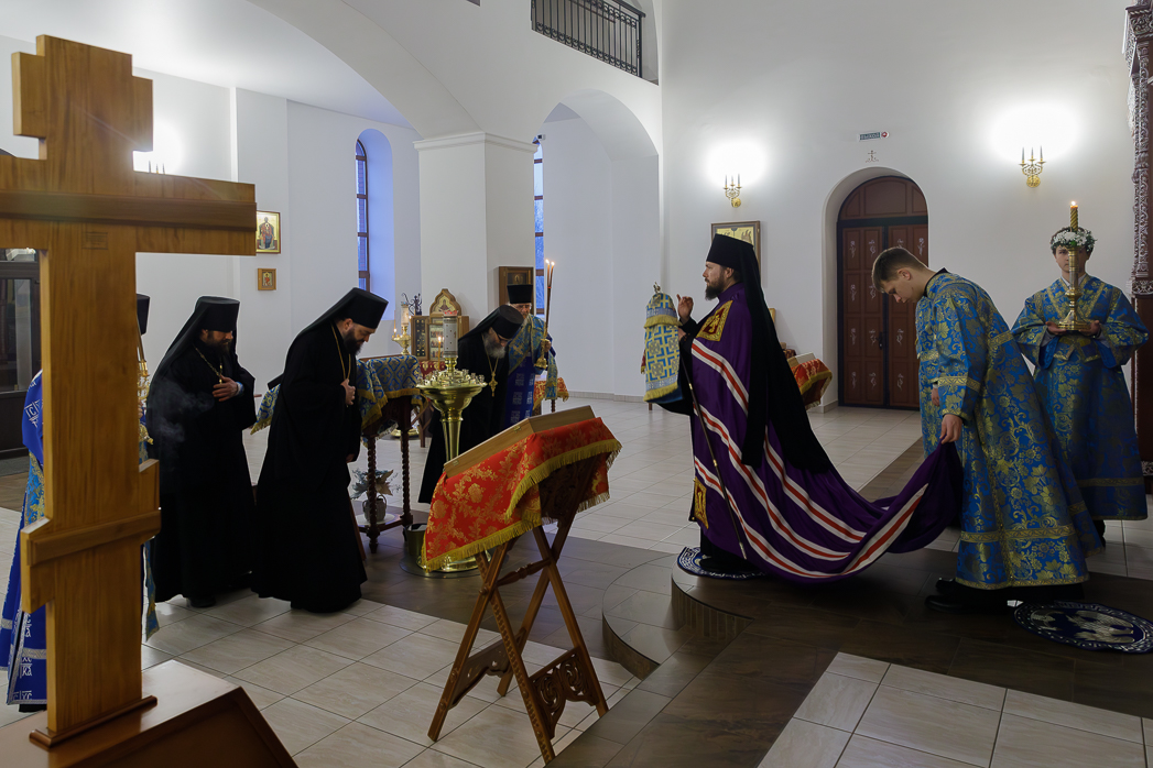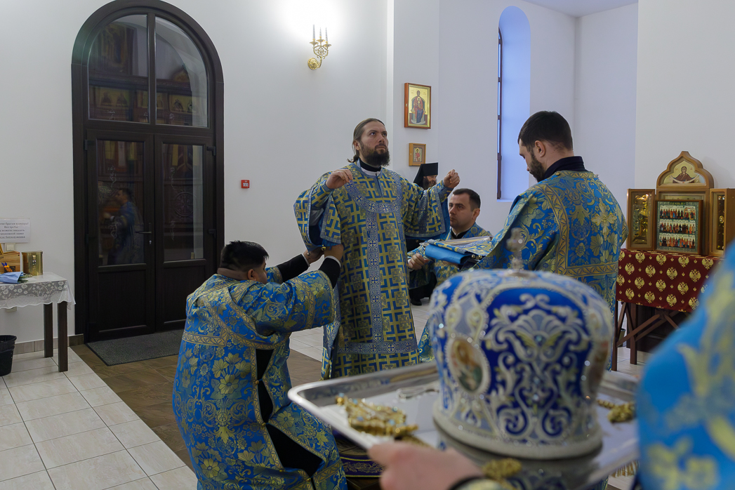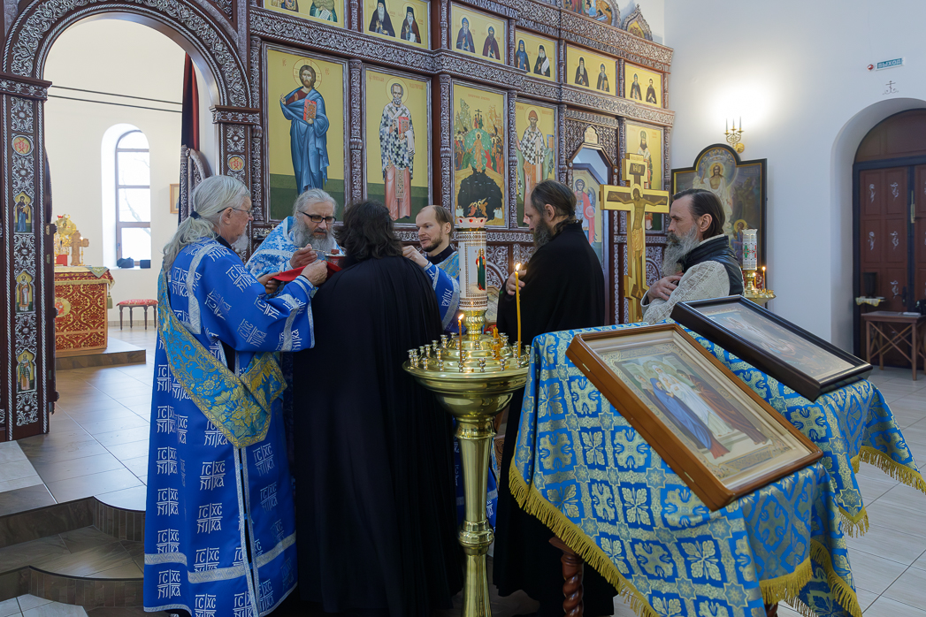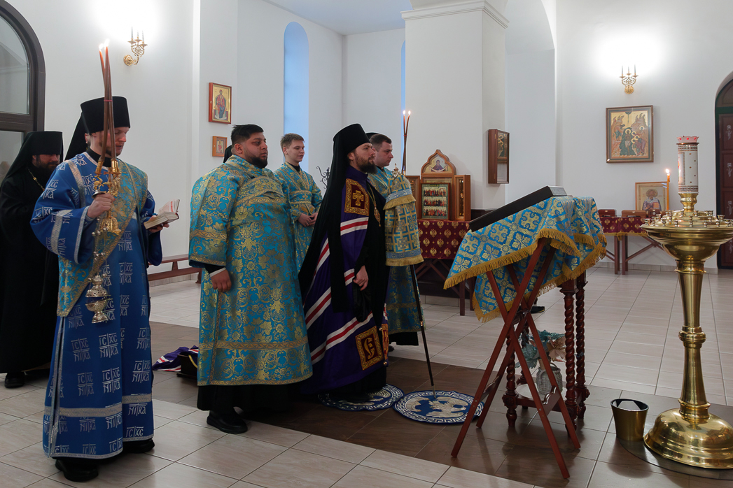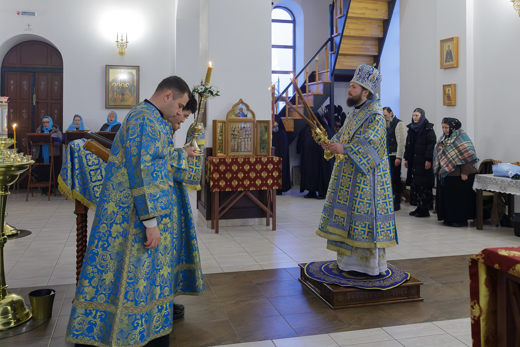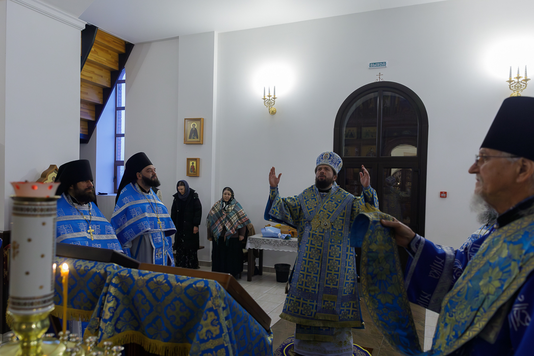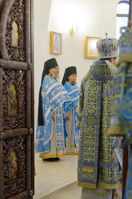 Его Преосвященству сослужили: благочинный Монастырского церковного округа, настоятель Воскресенского Белогорского мужского монастыря игумен Илия (Ждамиров) и братия обители в священном сане.