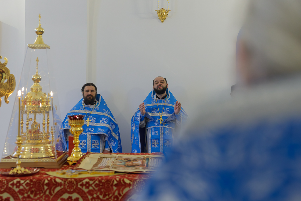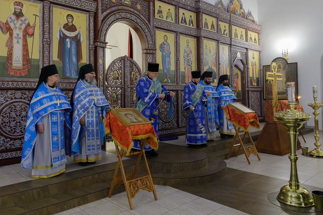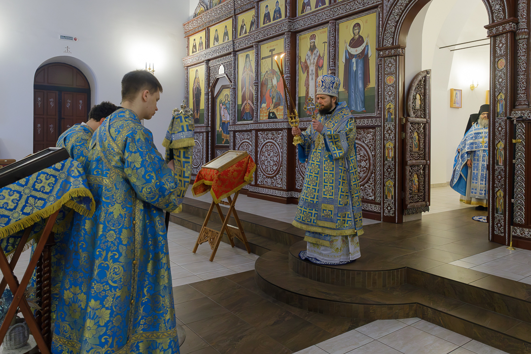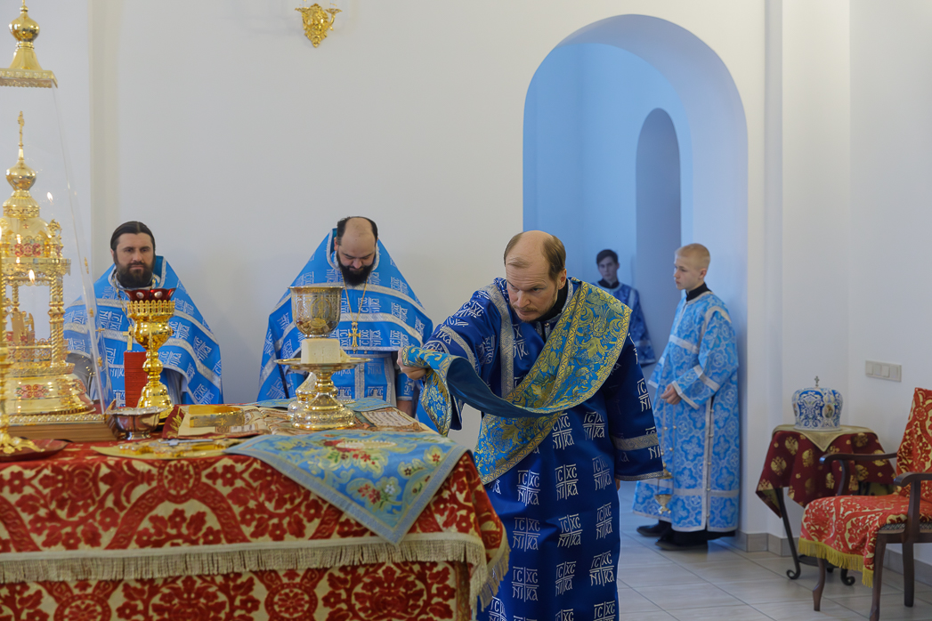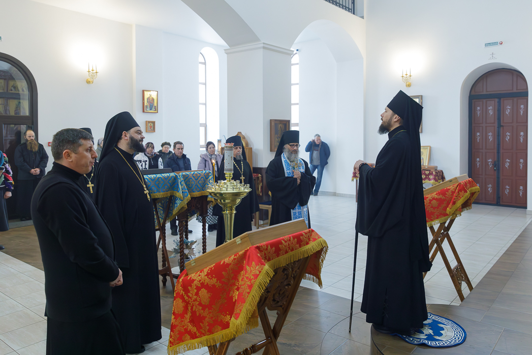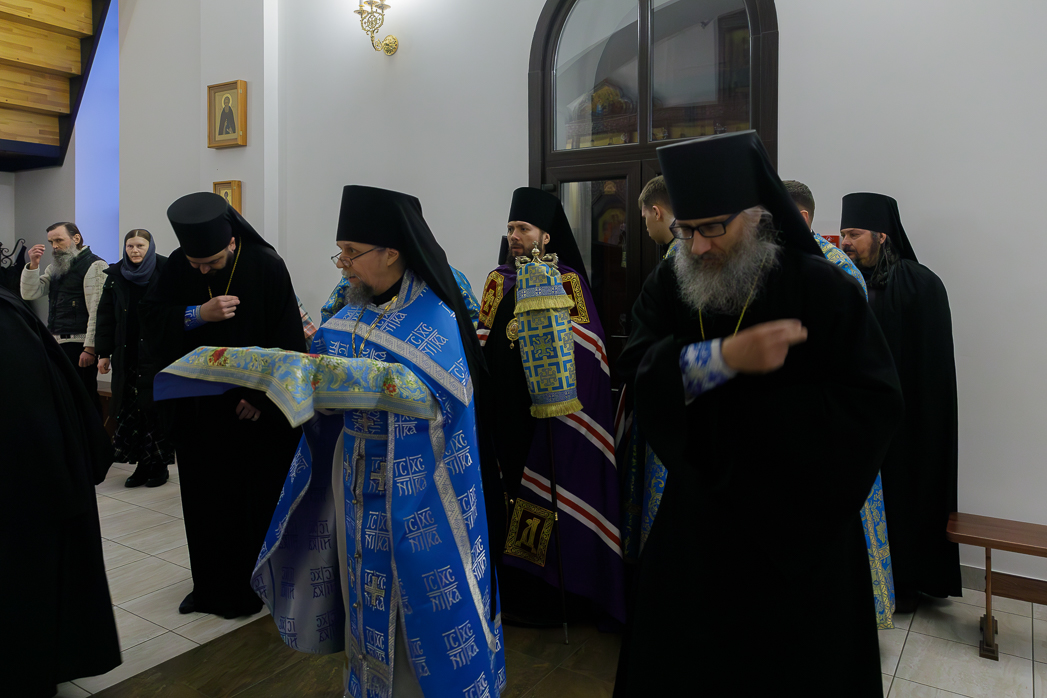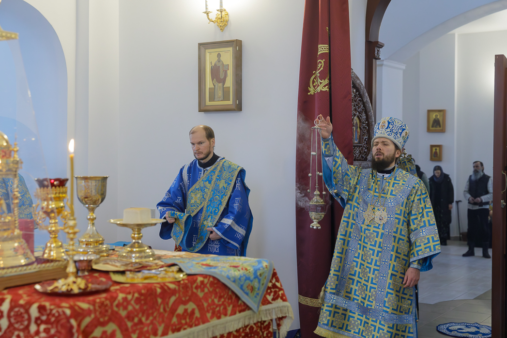 Его Преосвященству сослужили: благочинный Монастырского церковного округа, настоятель Воскресенского Белогорского мужского монастыря игумен Илия (Ждамиров) и братия обители в священном сане.