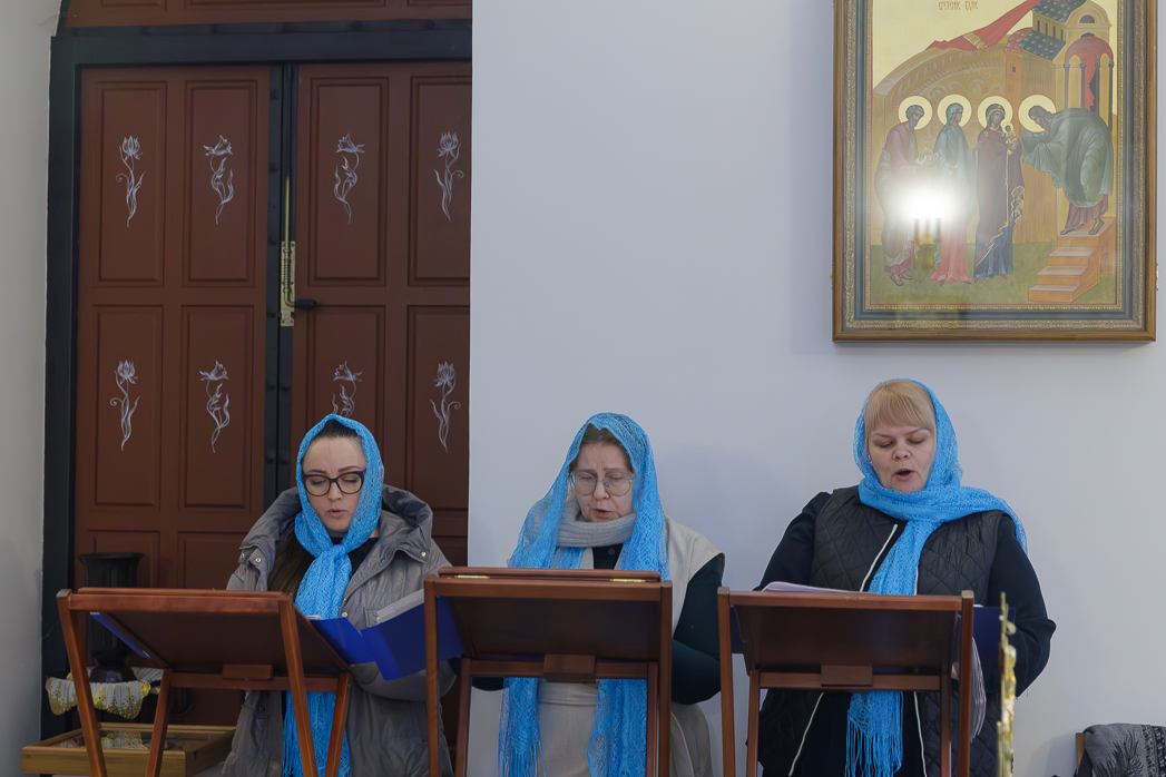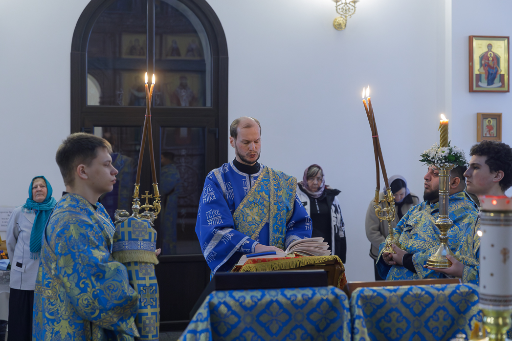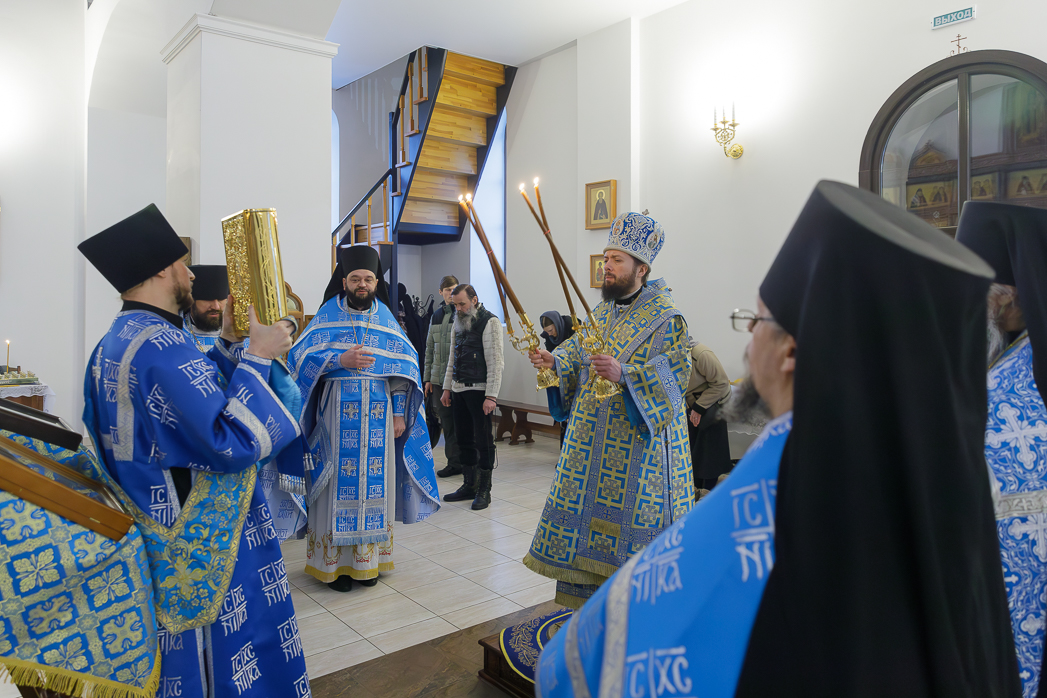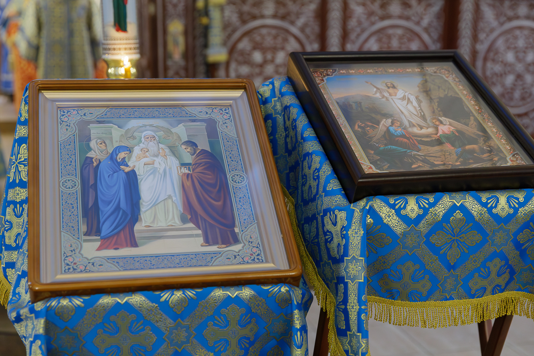 Евангельское зачало, читавшееся за Литургией, содержало повествование о ныне празднуемом событии Сретения Господа нашего Иисуса Христа праведным Симеоном в ветхозаветном Иерусалимском храме.