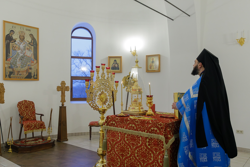 На сугубой ектении были произнесены прошения: «...о еже прияти молитвы нас, недостойных рабов Твоих, в сию годину испытания, пришедшую на Русь Святую...», а также прошение о «Преосвященных архипастырях, пастырях, монашествующих и мирянах земли Украинския, о единстве Церкви Христовой ревнующих, в заточении и гонениях сущих». Затем епископ Дионисий вознес молитву о Святой Руси. По благословению Святейшего Патриарха Московского и всея Руси Кирилла эта молитва возносится во всех храмах Русской Православной Церкви.