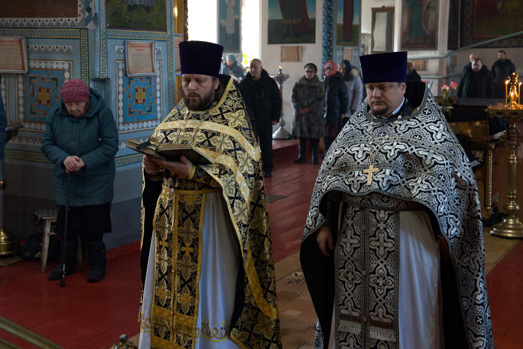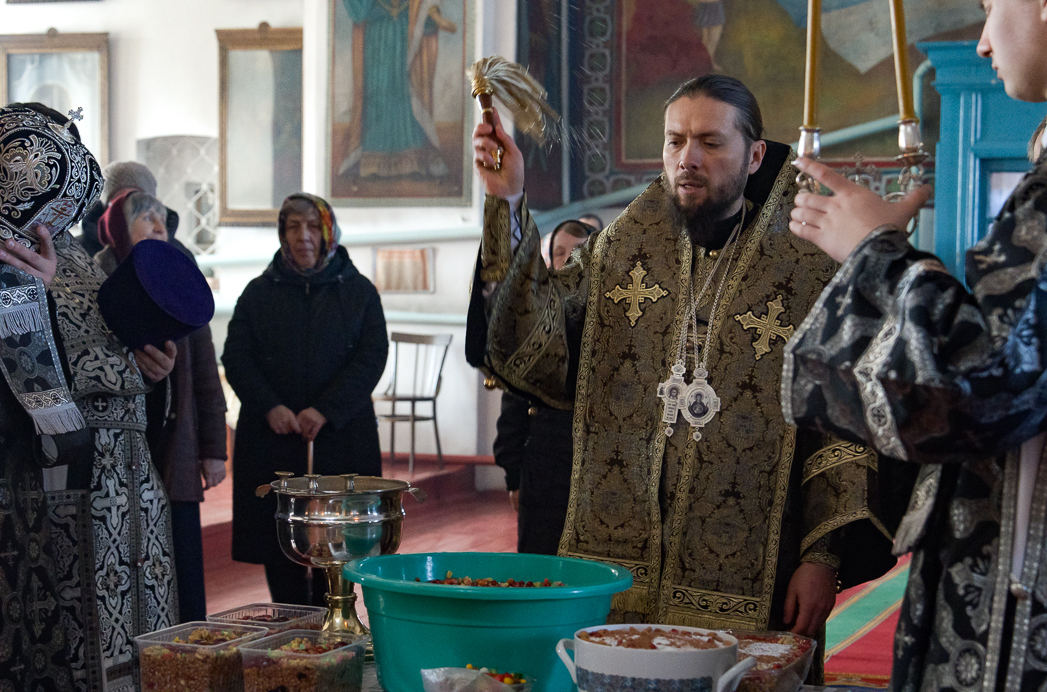 По заамвонной молитве совершалось чинопоследование с чтением канона святому великомученику Феодору Тирону и молитвой на благословение колива – сваренных с медом зерен пшеницы или риса, украшенных фруктами. После окропления святой водой коливо было роздано всем молящимся.