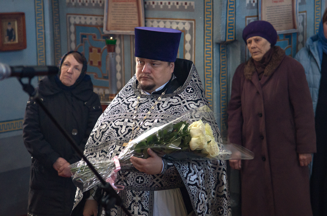 Затем с приветствием к Преосвященному Архипастырю обратился благочинный Калачеевского церковного округа, настоятель храма иерей Иоанн Суздальцев. В знак сыновней любви священнослужитель преподнес в дар епископу Дионисию букет цветов.