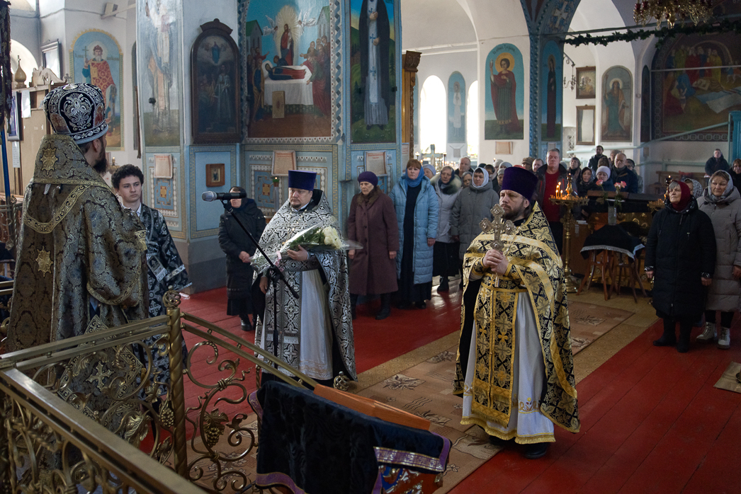 Его Преосвященству сослужили: благочинный Калачеевского церковного округа, настоятель храма иерей Иоанн Суздальцев и духовник Россошанской епархии, настоятель храма Архистратига Божия Михаила села Воробьевка иерей Игорь Подопригорин.