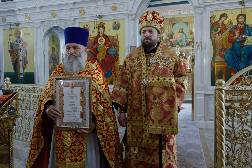 А также к празднику Светлого Христова Воскресения и в связи с отмечаемой юбилейной датой Правящий Архиерей удостоил настоятеля храма Рождества Пресвятой Богородицы села Старая Криуша Петропавловского района протоиерея Владимира Ляхова Архиерейской грамоты.