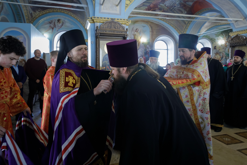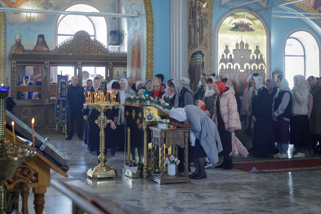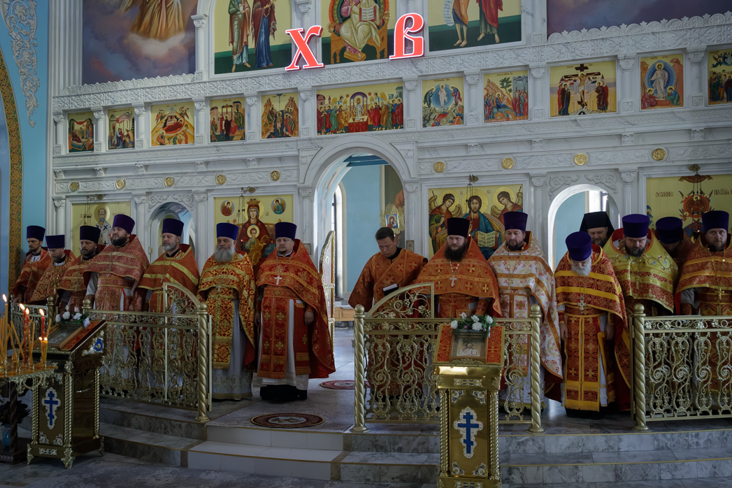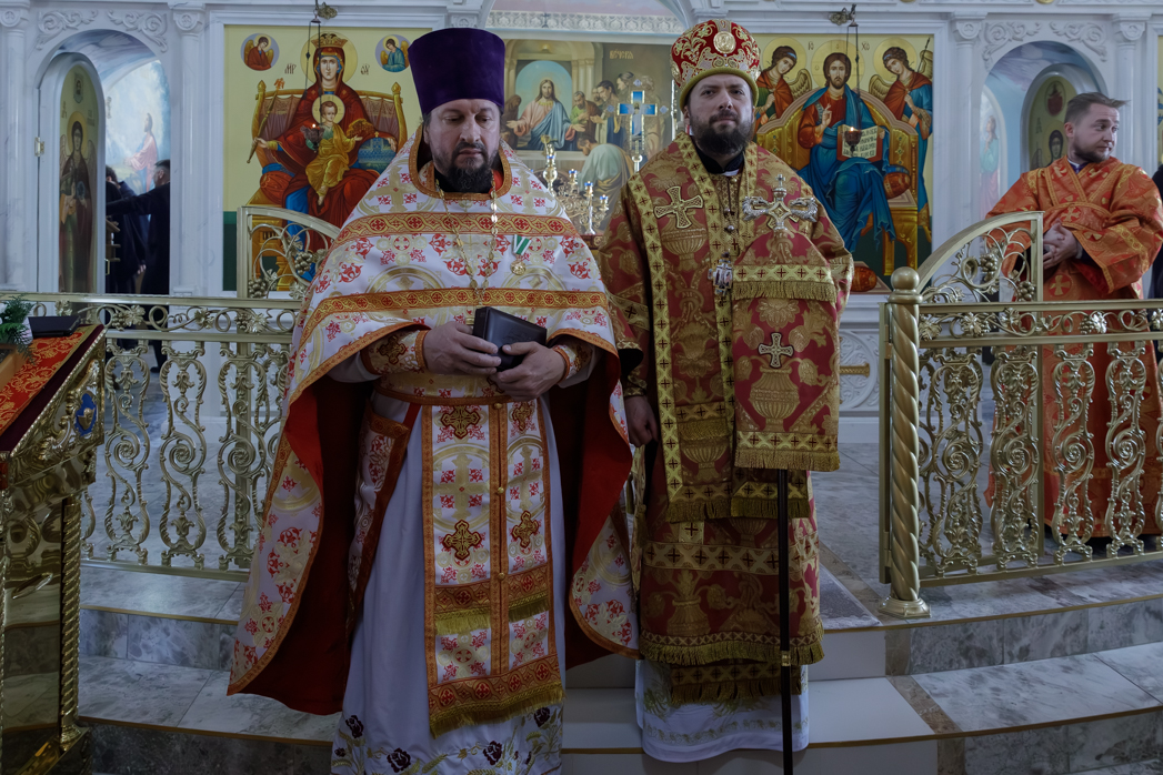 На сугубой ектении были произнесены прошения: «...о еже прияти молитвы нас, недостойных рабов Твоих, в сию годину испытания, пришедшую на Русь Святую...», а также прошение о «Преосвященных архипастырях, пастырях, монашествующих и мирянах земли Украинския, о единстве Церкви Христовы ревнующих, в заточении и гонениях сущих». Затем епископ Дионисий вознес молитву о Святой Руси. По благословению Святейшего Патриарха Московского и всея Руси Кирилла эта молитва возносится во всех храмах Русской Православной Церкви.
