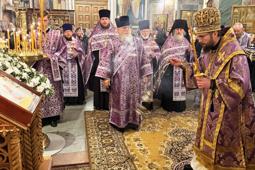 14 марта, в канун Недели 3-й Великого поста, Крестопоклонной, Преосвященнейший Дионисий, епископ Россошанский и Острогожский, совершил всенощное бдение с чином выноса Честного и Животворящего Креста Господня в Свято-Троицком соборе Серафимо-Дивеевского монастыря.